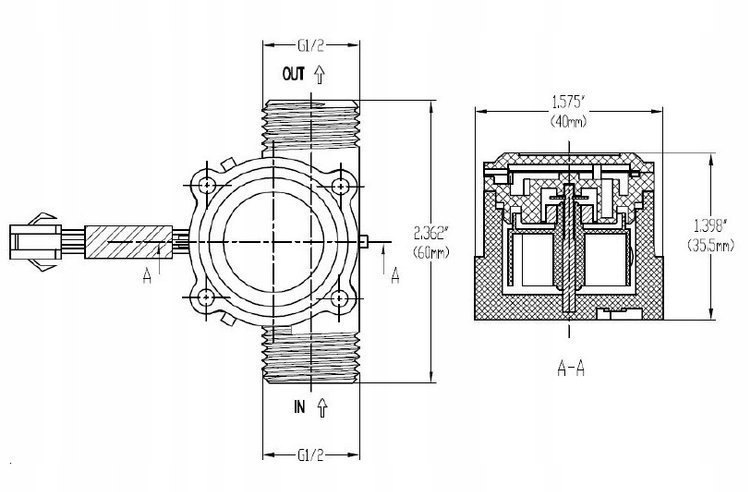 Датчик потоку рідини, вода 1-30 л/хв - 1/2' - витратомір YF-S201