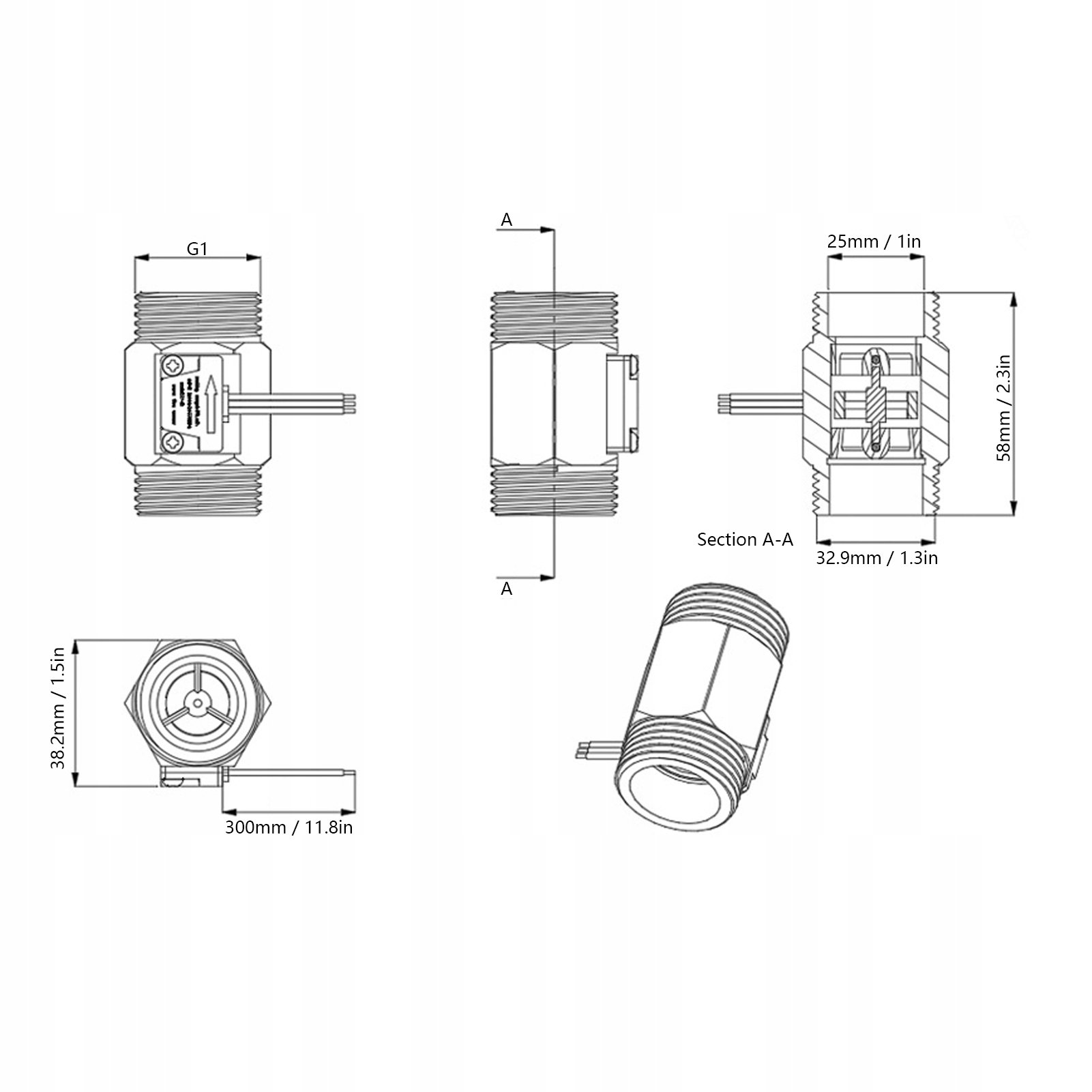 2. Витратомір води: в основному складається з корпусу клапана, вузла робочого колеса потоку води та датчика Холла.