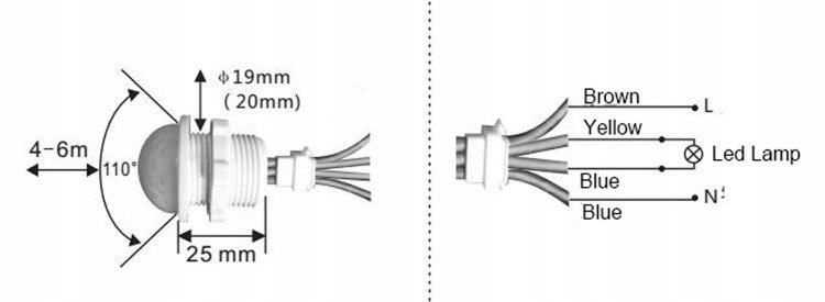 - Мініатюрний інфрачервоний датчик руху підходить для контролю світлодіодних лампочок Крім того, датчик має вбудований датчик сутінків, тому він працює лише в темрява.