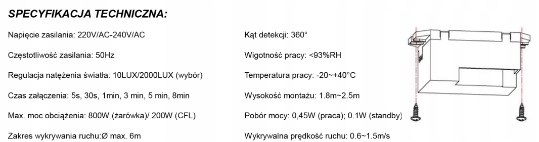 ПРАЦЮЄ ЗІ СВІТОДІОДАМИ ТА ЛАМПОЧКАМИ ЕНЕРГОЗБЕРЕЖЕННЯ БІЛОГО КОЛЬОРУ Запрошуємо для придбання якісного мініатюрного датчика руху та сутінків він має клас герметичності IP20, що збільшує термін служби нашого датчика. Якщо ви хочете економити електроенергію і часто забуваєте вимкнути світло в кімнаті, датчик руху - найкраще рішення для вас! Детектор підходить для світлодіодного, енергозберігаючого освітлення та ламп розжарювання, а також може вмикати інші пристрої, такі як вентилятори тощо.