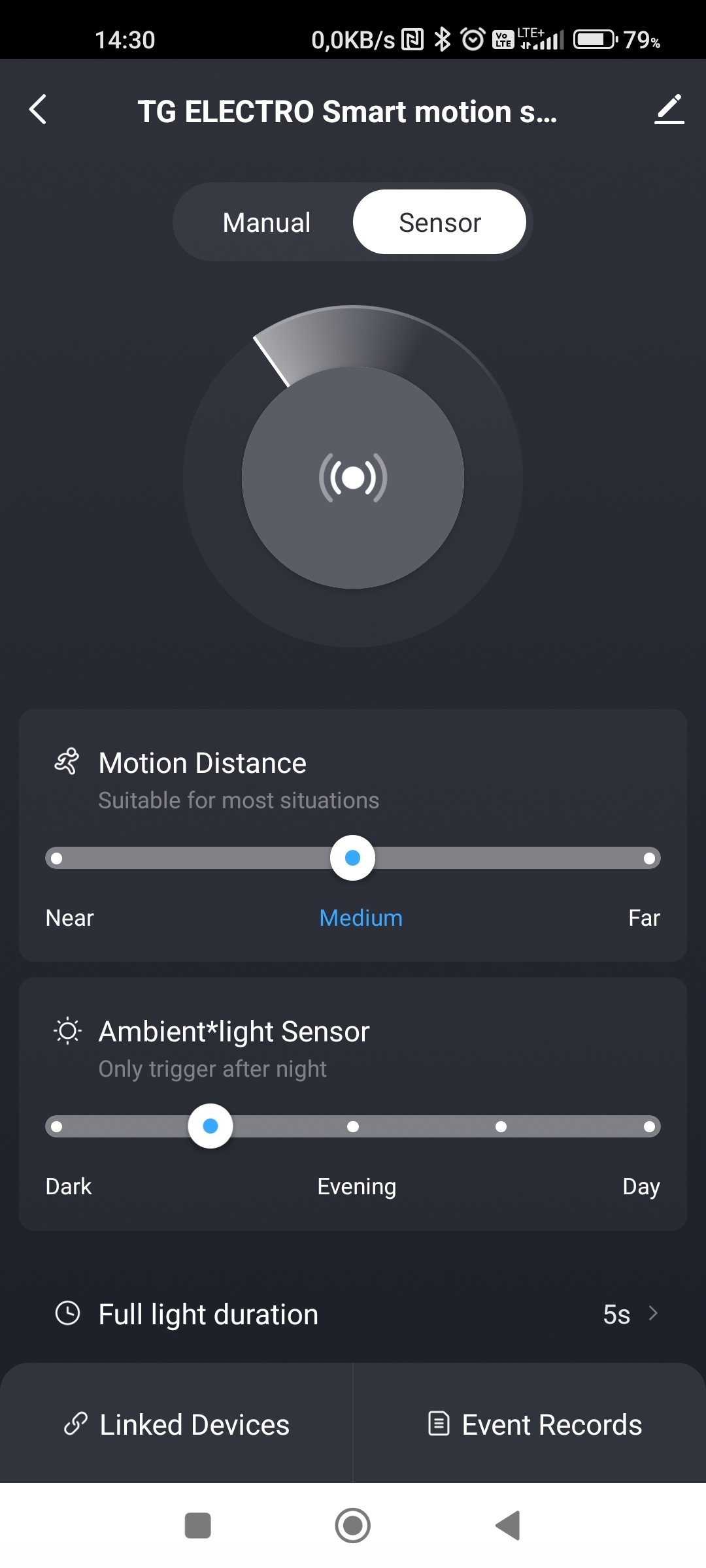 - Налаштування чутливості до сенсора світла 'Lux: Так; 5 - 2000 Люкс