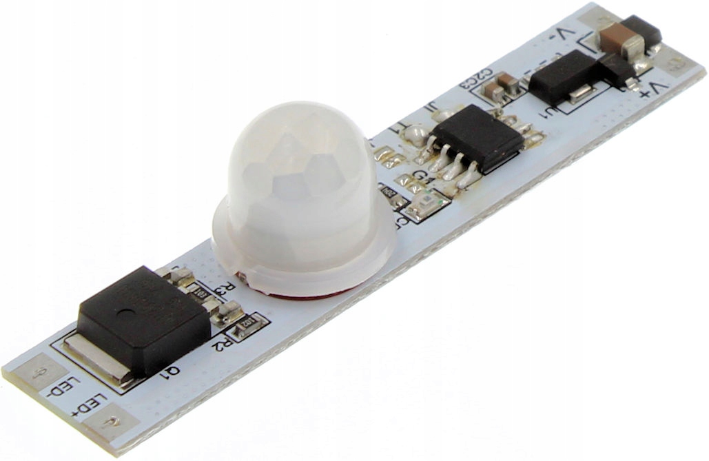 Сенсор, який використовується в світлодіодних профілях, призначений для роботи з будь-якою світлодіодною стрічкою, драйверами струму та всіма пристроями, що керуються напругою 12-24 В. Датчик включається при виявленні руху на відстані до 3 м. Вимикається приблизно через 20 секунд, якщо немає виявлення руху.