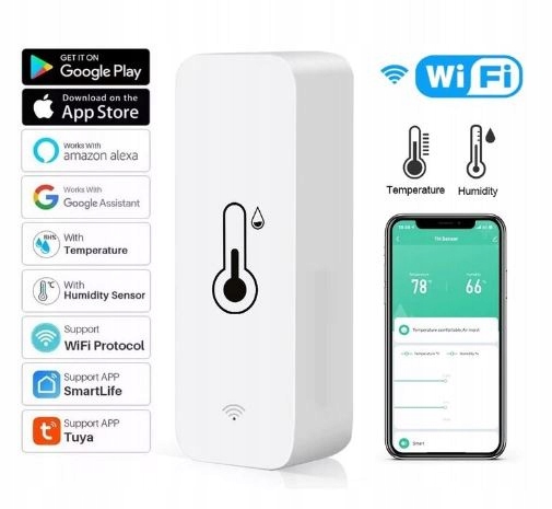 - Наш датчик температури та вологості Tuya WiFi дозволить вам перевіряти параметри температури та вологості з будь-якої точки землі, як а також керувати іншими пристроями, які співпрацюють із додатком TUYA на основі його показань.