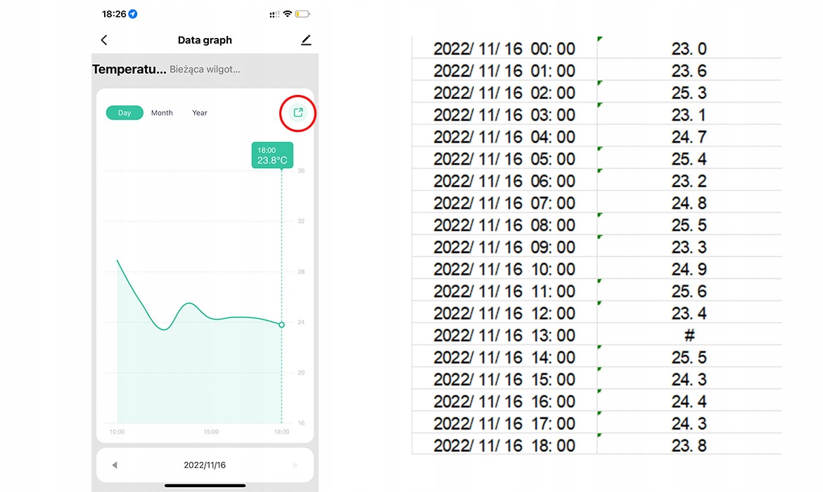 Ви можетенадіслати дані про температуру на свою електронну пошту за адресою будь-коли в електронному листі ви знайдете файл xslx (excel), завдяки якому ви зможете легко створювати власні діаграми в іншій програмі. Дані представлені у зрозумілій таблиці, знак # означає відсутність вимірювання (наприклад, коли датчик був вимкнений)