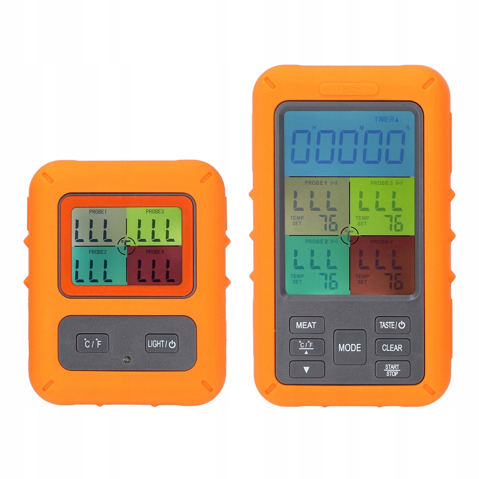 4. Температурний сигнал і вбудований таймер: датчики температури м'яса для коптильних пристроїв вимірюють точну температуру вашого гриля або коптильної камери та можуть точно нагадати вам, коли потрібно додати більше палива; Завдяки вбудованому таймеру датчика температури смаження ви можете помішувати, виконувати роботу або дивитися телевізор без необхідності постійно наводити курсор на гриль