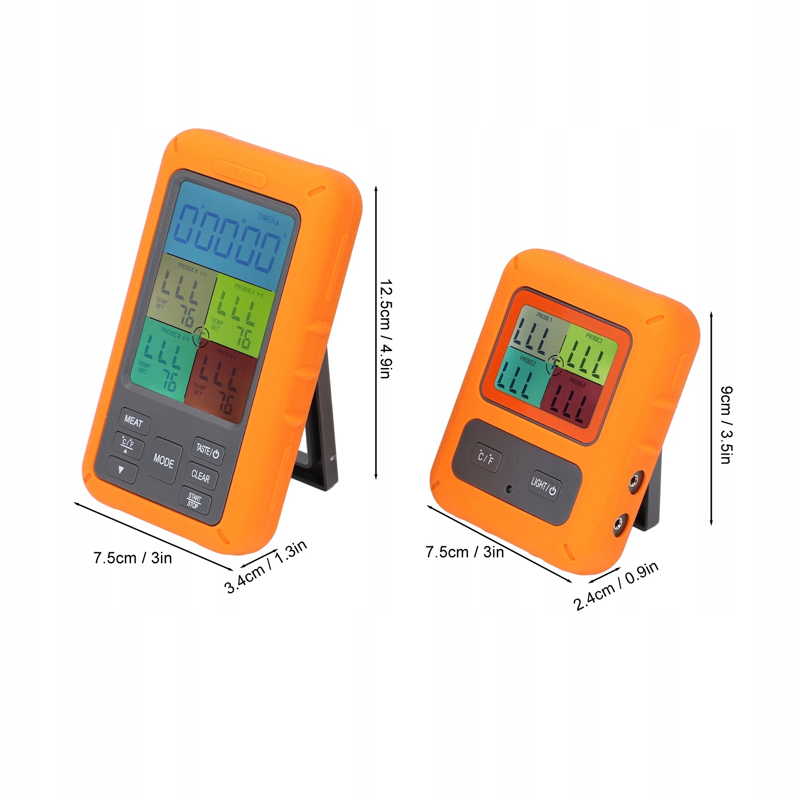 2. Уникайте плутанини з 4 зондами з кольоровим кодуванням: одночасно контролюйте до 4 типів м’яса або температуру навколишнього середовища в коптильні, духовці, грилі за допомогою 4 зондів цього бездротового датчика температури гриля; Кожен зонд можна легко ідентифікувати за допомогою окремого зонда для м’яса та штекера з кольоровим кодуванням