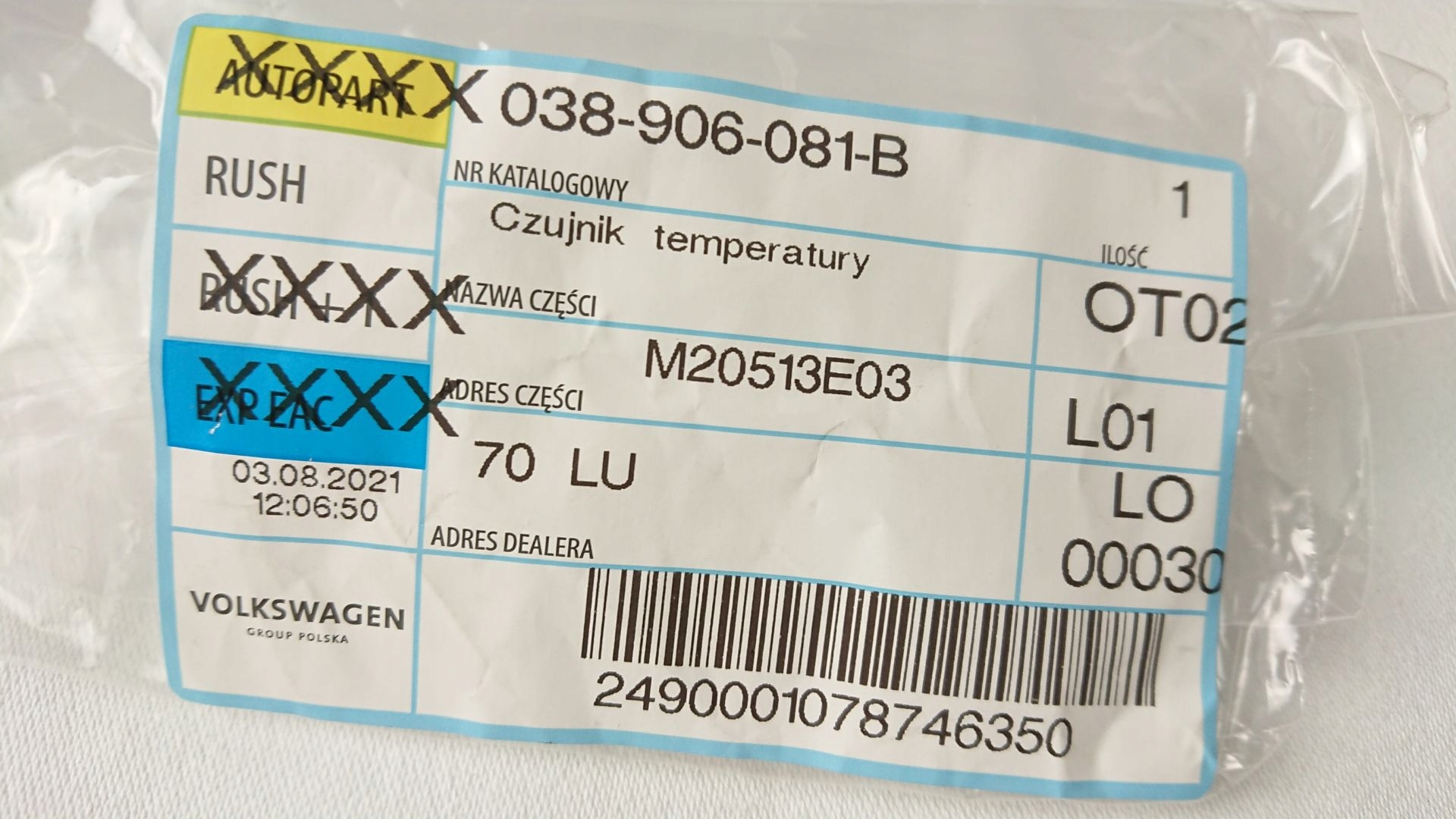 ДАТЧИК ТЕМПЕРАТУРИ ПАЛИВА 038906081B AUDI SEAT VW