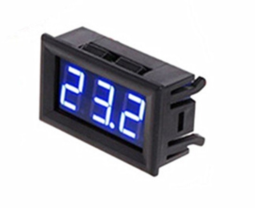 Цифровий панельний термометр із 7-сегментним світлодіодним дисплеєм із діапазоном вимірювання від -50 до 110°C. Вимірювання температури здійснюється за допомогою зонда, а модуль живиться від мережі 12 В. Його можна використовувати як датчик температури в акваріумі або холодильнику.
