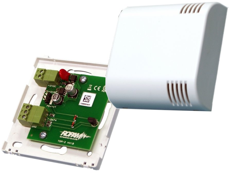 Датчик температури Ropam TSR-2 забезпечує вимірювання температури повітря в діапазоні від -20°C до +70°C. Отримане значення використовується модулем для реалізувати функції термостата. Про перевищення значень L, H може сигналізувати SMS та/або VOICE (голосове повідомлення). Поточне значення температури додається до SMS-повідомлення «СТАТУС». Якщо в системі встановлено модуль VSR-2, голосові повідомлення можуть мати унікальний вміст.