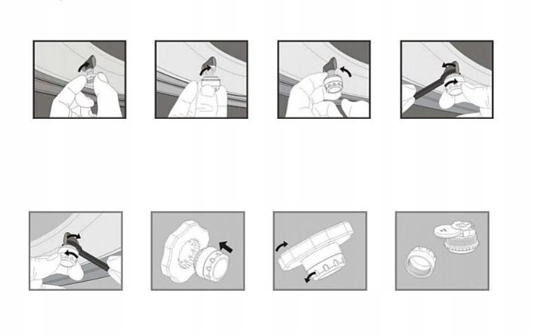 Встановлення датчиків із набору дуже просте та швидке. Відкрутіть старі кришки клапанів. Потім накручуємо протиугінні гайки і потім датчики відповідно до маркування датчиків: F.W - переднє колесо, R.W - заднє колесо. Вручну закручуємо протиугінну гайку якомога ближче до датчика, а потім затягуємо гайковим ключем, який входить в комплект.