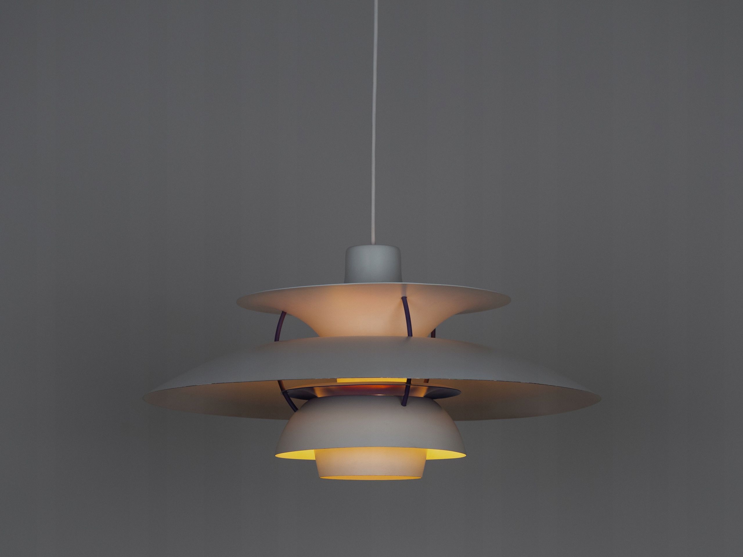 Лампа PH 5 — ікона датського дизайну, яка здобула величезну популярність у всьому світі. PH 5 був розроблений відомим дизайнером та архітектором Поулом Хеннінгсеном у 1958 році та все ще виробляється Луїсом Поульсеном донині. Форма світильника розроблена за принципом відбиваючої системи, яка спрямовує світло не тільки вниз, а й убік, освітлюючи саму лампу. PH 5 завдяки своїй структурі дає розсіяне світло без відблисків теплих тонів.