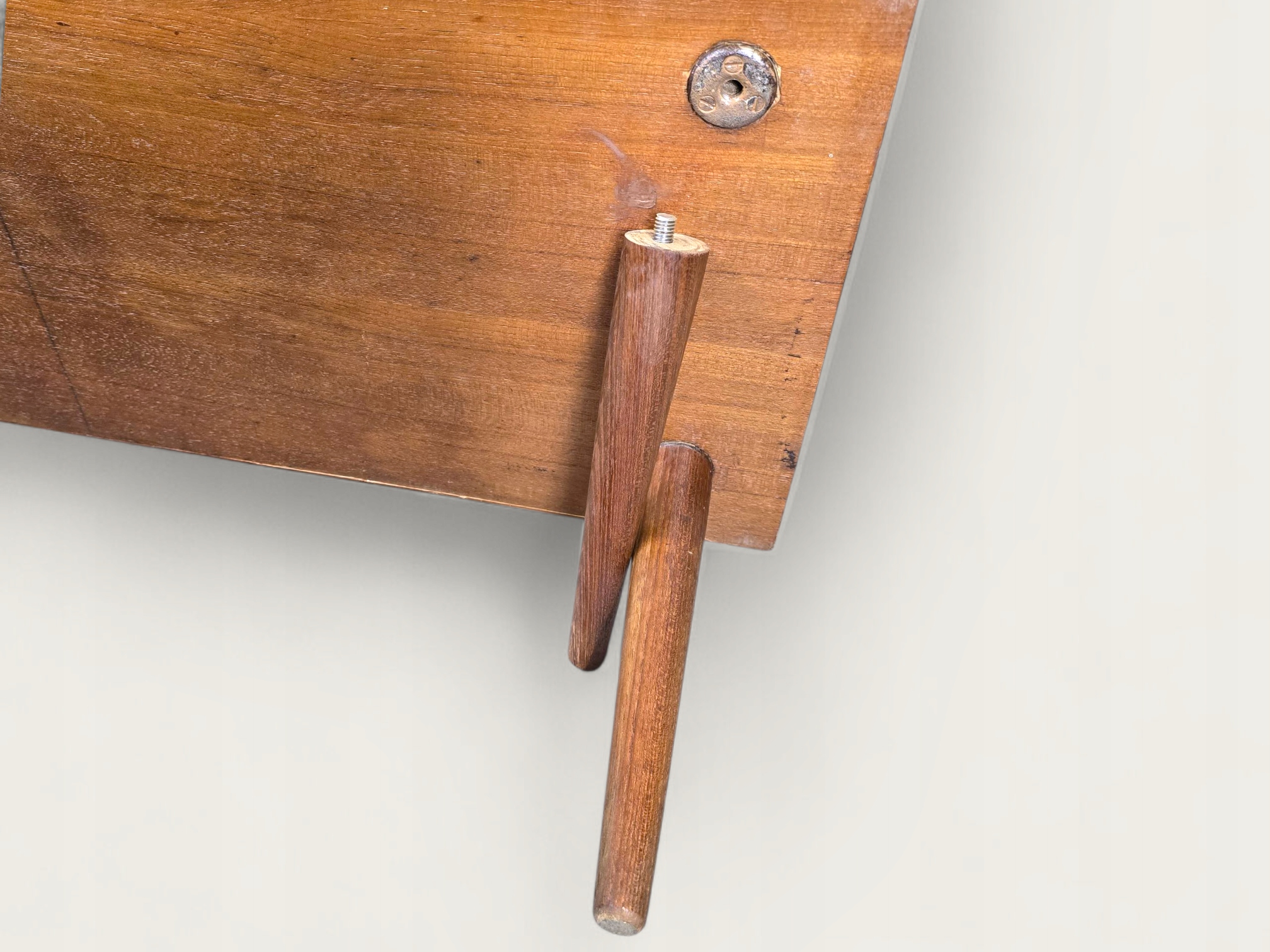 Меблі в хорошому стані, зі звичайними слідами використання відповідно до віку. Для більш вимогливих людей - невеликий ремонт. Візуально він виглядає так, як на фото - елегантний, простий і сповнений вінтажного шарму. Ніжки відкручуються; вони, ймовірно, спочатку були трохи вищими.