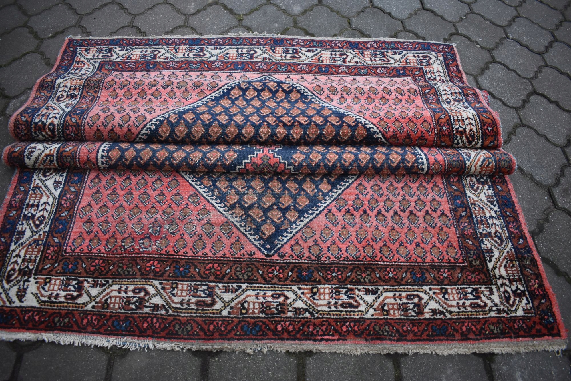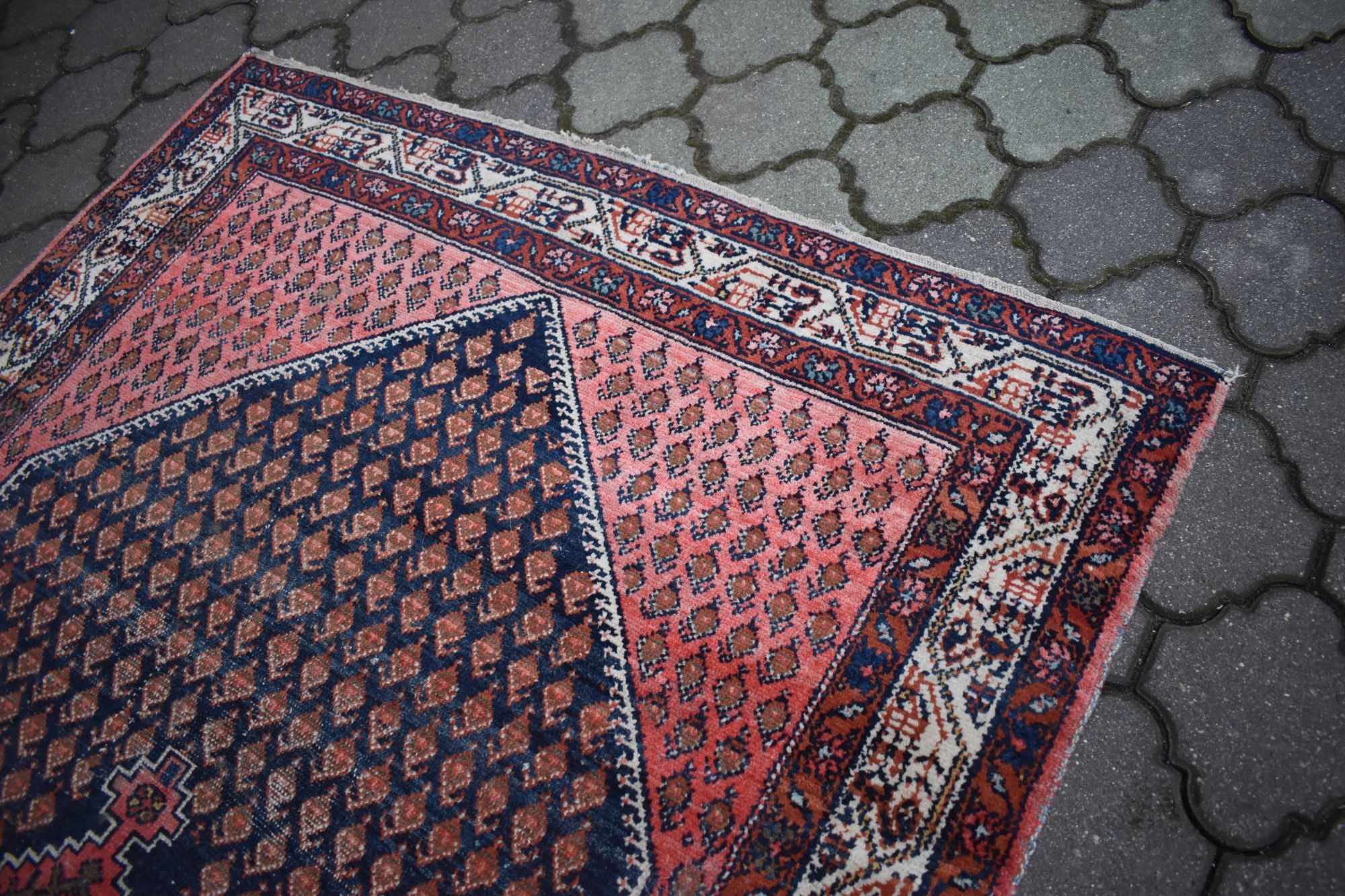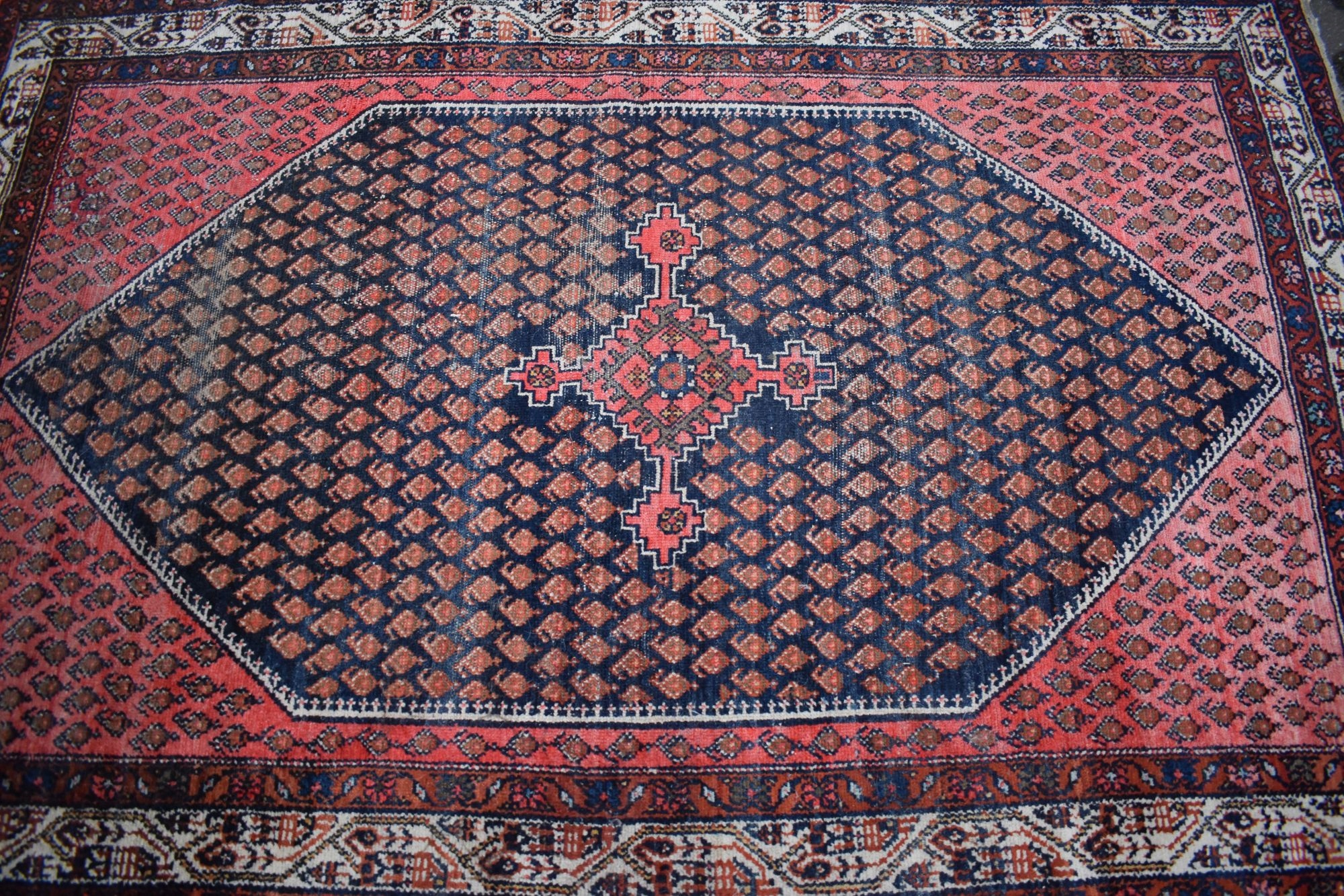 На наступному аукціоні я пропоную вам старий килим ручної роботи SENNEH - IRAN, виготовлений із вовни найвищої якості.< /b >