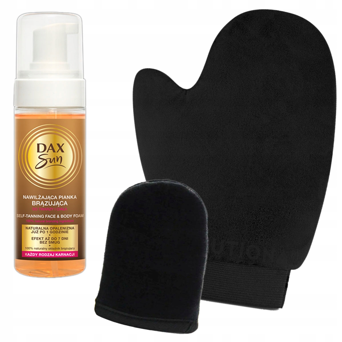 Набір Dax Sun зволожуюча бронзуюча піна для обличчя та тіла + набір Beautiona з рукавичок для обличчя та тіла для нанесення чорної автозасмаги