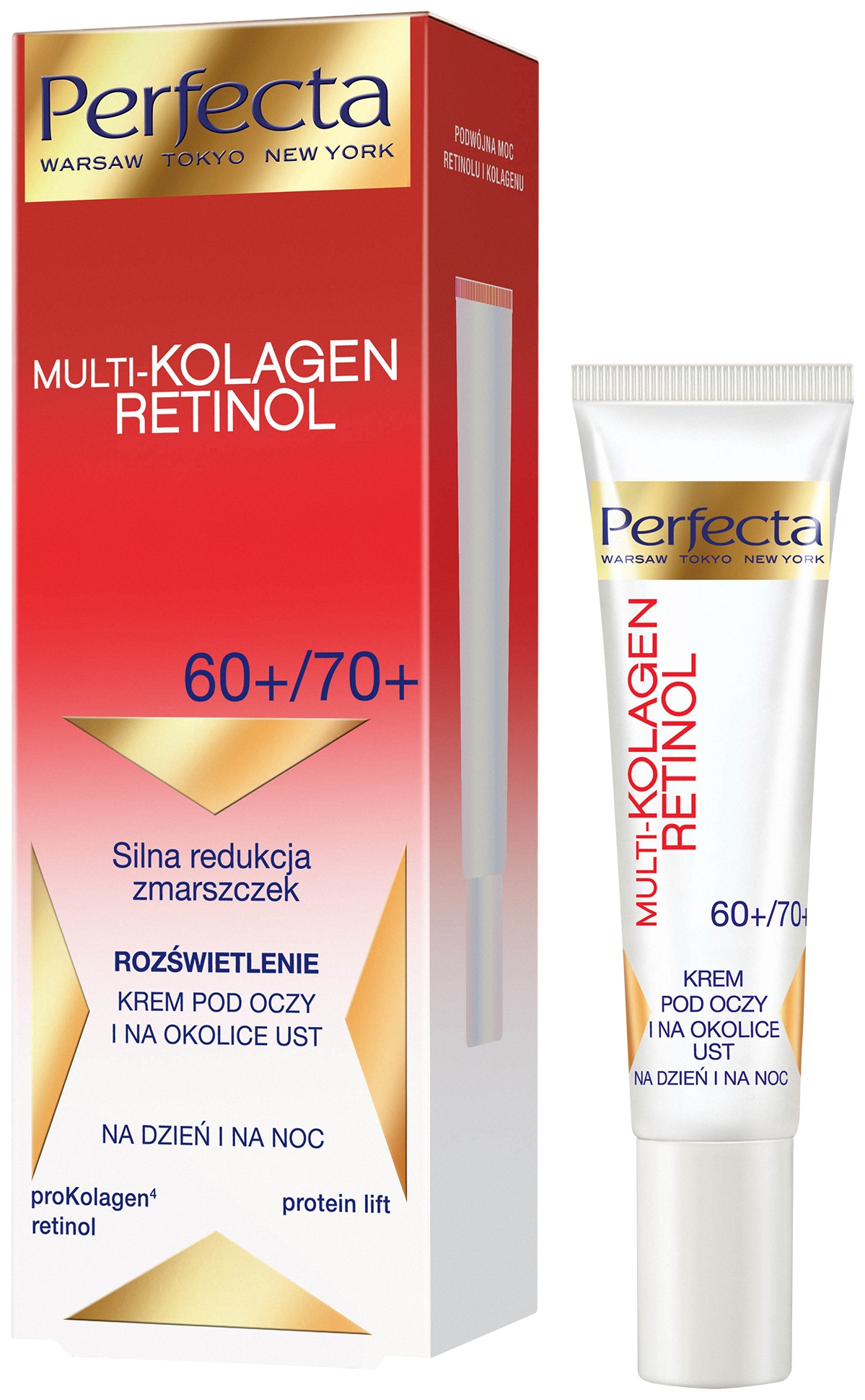 DAX PERFECTA MULTI-COLLAGEN RETINOL 60+/70+ ОСВІТЛЮЮЧИЙ КРЕМ ПІД ОЧИМИ ТА ОБЛАСТЬЮ РОТА ДЕНЬ І НІЧ, СИЛЬНЕ ЗМЕНШЕННЯ ЗМОРШОК 15 мл