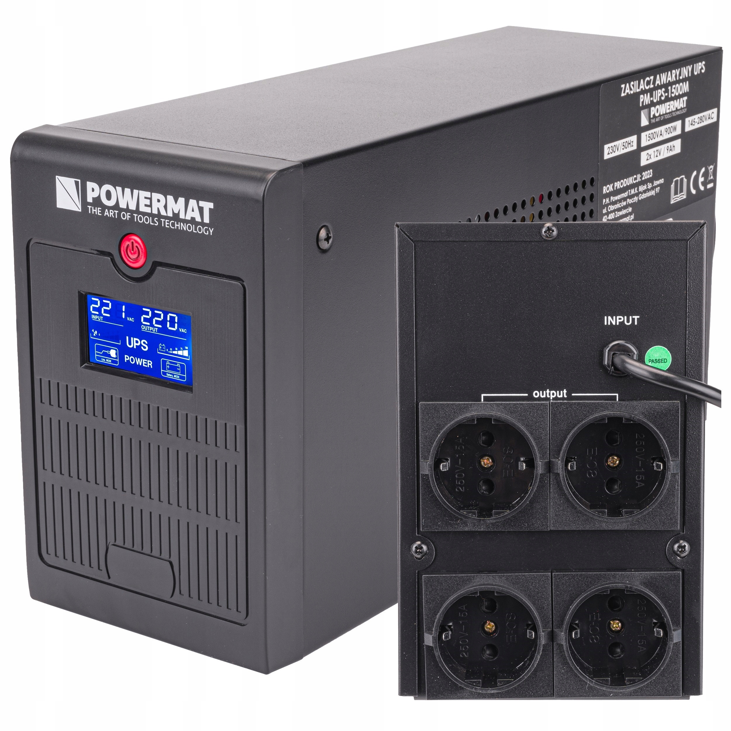 Джерело безперебійного живлення PM-UPS-1500M від POWERMAT є автономним джерелом живлення з ефективною потужністю 900 Вт і повною потужністю 1500 ВА.
