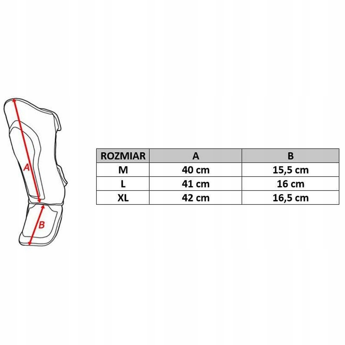 Представлені захисники великогомілкової кістки зроблені з спеціалізованої піни високої щільності, завдяки якому захисники легкі, але в той же час ідеально поглинають вплив комфорту та безпеки під час тренувань. Використовуване наповнення стійке до скупчення та деформації, завдяки якому захисники зберігають свої властивості навіть після багатьох років використання. Форма захисників забезпечує дуже добре придатність до гомілки та стопи, завдяки якому захисники не рухаються під час ударів, забезпечуючи належний захист. М'яка і плавна підкладка у внутрішній частині захисників захищає від потертостей та забезпечує комфорт тренувань. Протектори оснащені 2 широкими липучками та 2 манжетою