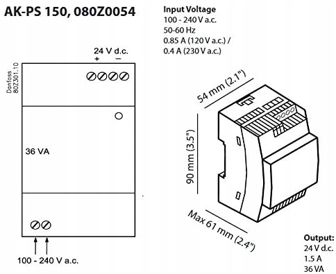 DC 24V 1.5 A AK-PS 150 DIN rail блок живлення