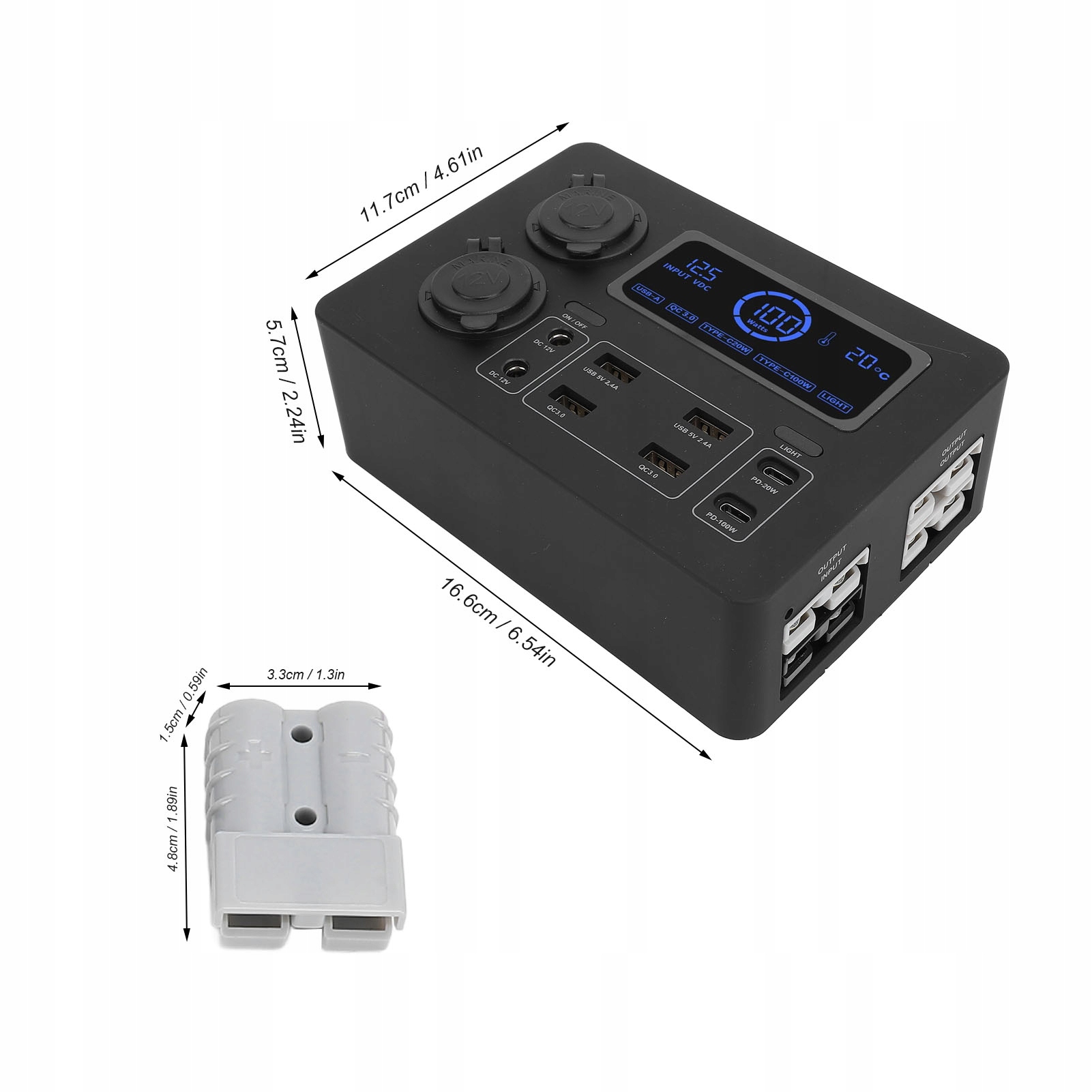 1. РІЗНІ ВИХІДНІ ПОРТИ: Міні-блок живлення 12 В пропонує широкий вибір варіантів виходу, оснащений 4 портами Anderson, 6 портами USB і 2 розетками 12 В, що відповідає потребам заряджання кількох пристроїв одночасно.