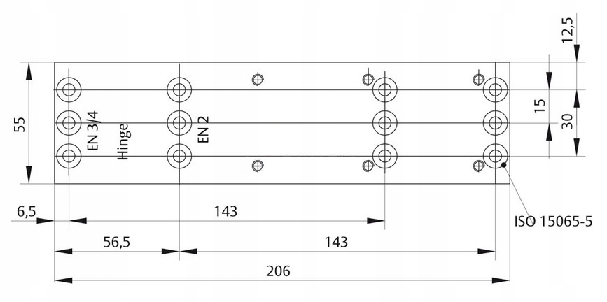 - Регульована сила закривання EN 2/3/4/5 за допомогою регульованого встановлення дверного доводчика відносно до петель