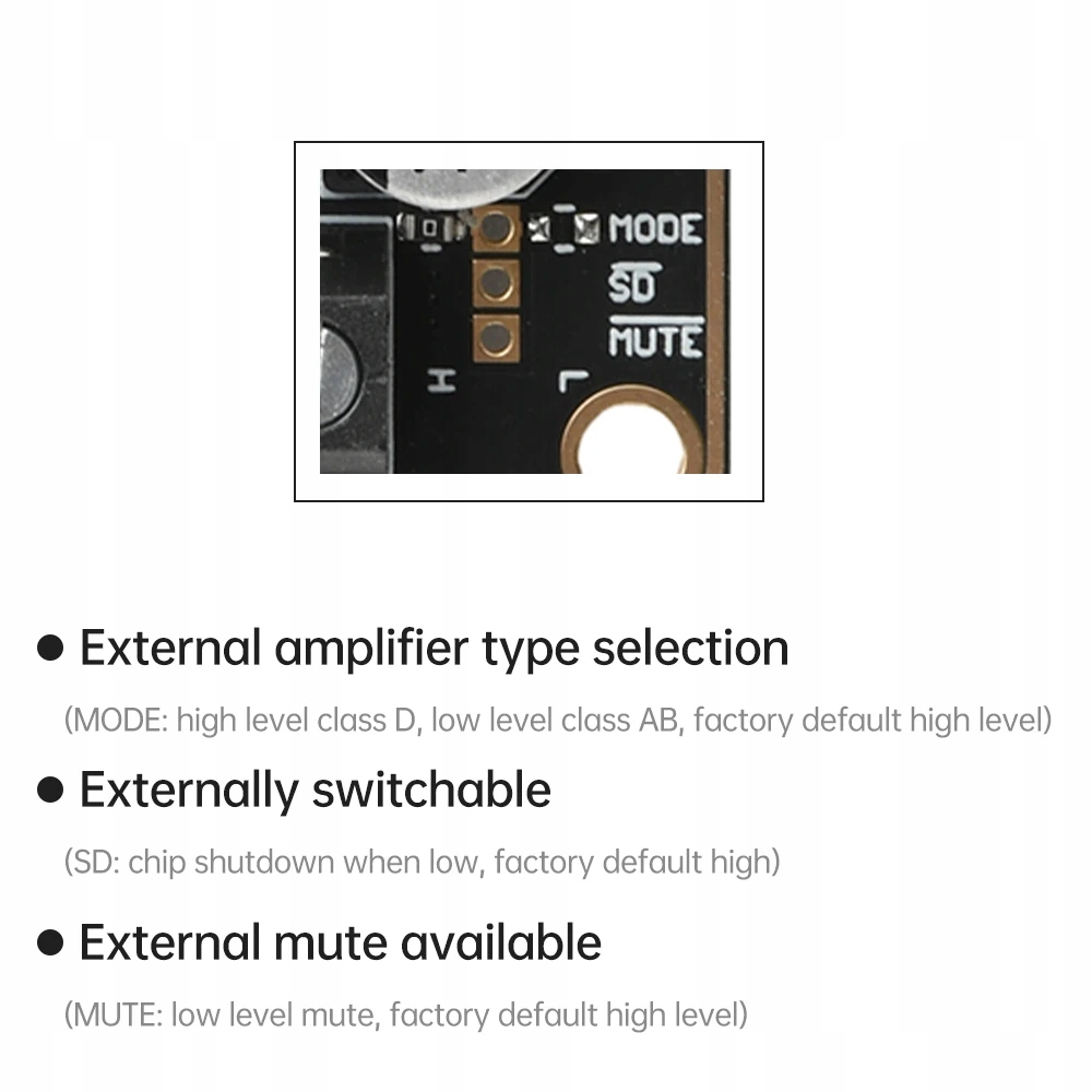 Функція вибору типу зовнішнього підсилювача (MODE: клас D високий, клас AB низький, заводська настройка висока потужність)