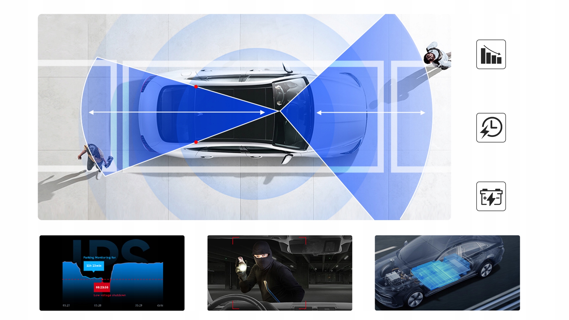 N5 Dual оснащено системою керування живленням IPS, яка постійно контролює напругу автомобільного акумулятора. Автоматично вимикає живлення, коли напруга падає нижче встановленого порогу, що дозволяє контролювати напругу акумулятора в будь-який час за допомогою програми DDPAI.