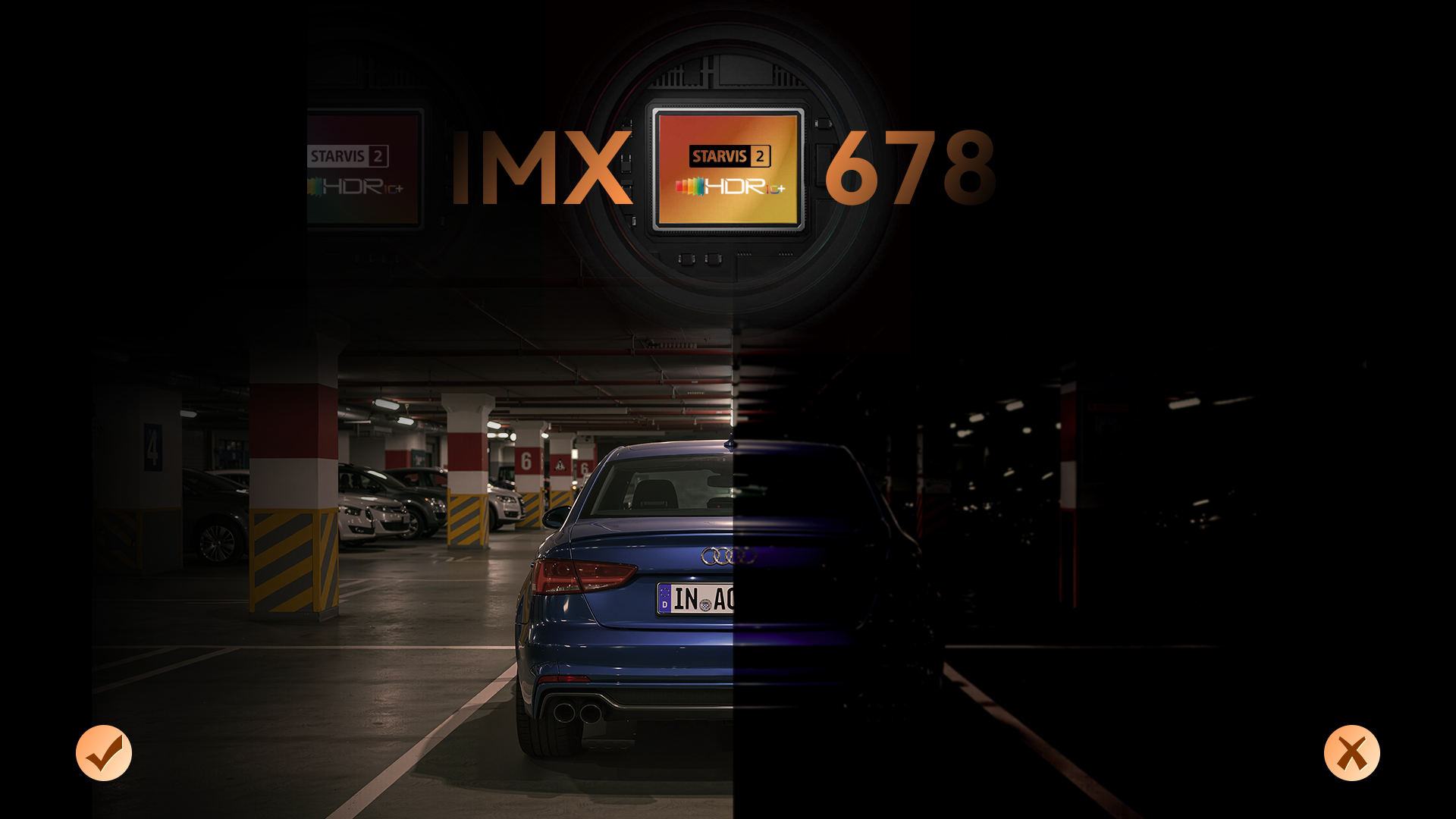 Подвійні сенсори SONY STARVIS 2 IMX678 і HDR із налаштуванням RealCube для передньої та задньої камер забезпечують різкість і збалансованість кожного каналу вдень і вночі, а кожна деталь залишається чіткою.