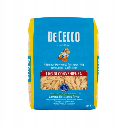 De Cecco Mezze Penne Rigate n'41 — це коротка паста пенне. Penne Rigate mezze, завдяки своєму невеликому розміру, ідеально підходить для змішування зі спеціями, особливо більш вершковими, як червоними з томатами, так і з білим сиром, або з класичними супами для заправки ложкою.