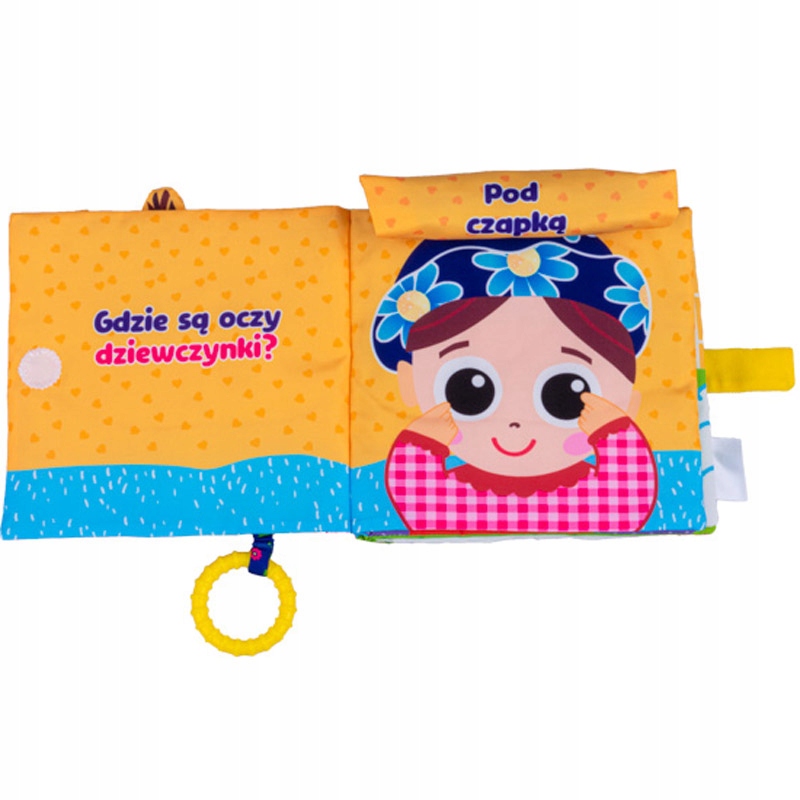 - книжка з м'якої тканини, яка заохочує до активності та пізнання світу, - книжка польською мовою, - 10 сторінок, - має прорізувач з виступами, який заспокоює біль під час прорізування зубів, - має шурхотливі елементи, - приховану пищалку, - застібку-липучку, - має ручку на звороті для зручного перенесення ручки або підвішування у вибраному місці: на колясці, ліжечку, дитячій люльці чи килимку, - виріб стимулює уяву, розвиває почуття, тренує дрібну моторику та м'язи, дозволяючи самостійно відкривати нові цікавинки, - все це зроблено з високоякісних матеріалів з цікавою структурою та контрастними кольорами та візерунками, має багато різноманітних навчальних елементів та функцій, які стимулюють розвиток дитини.