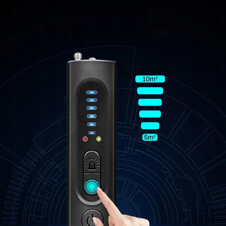 Детектор прихованих пристроїв невеликий (більш -менш розмір ручки). Невеликий розмір та легкий дизайн дозволяє цей продукт прості в різних випадках. Це можна легко взяти з собою в рекреаційній або діловій подорожі. Зручно захистити свою конфіденційність та безпеку бізнес -інформації.