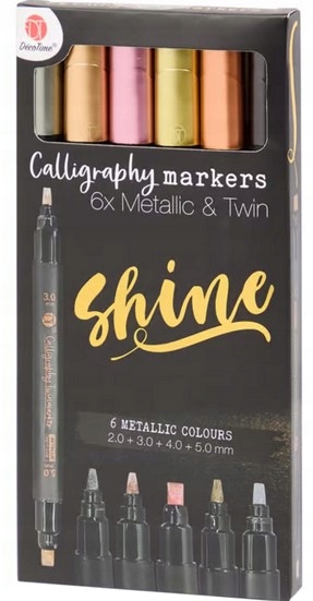 DecoTime Sparkle Маркери для каліграфії металеві 2 різних наконечникаx6 колір.