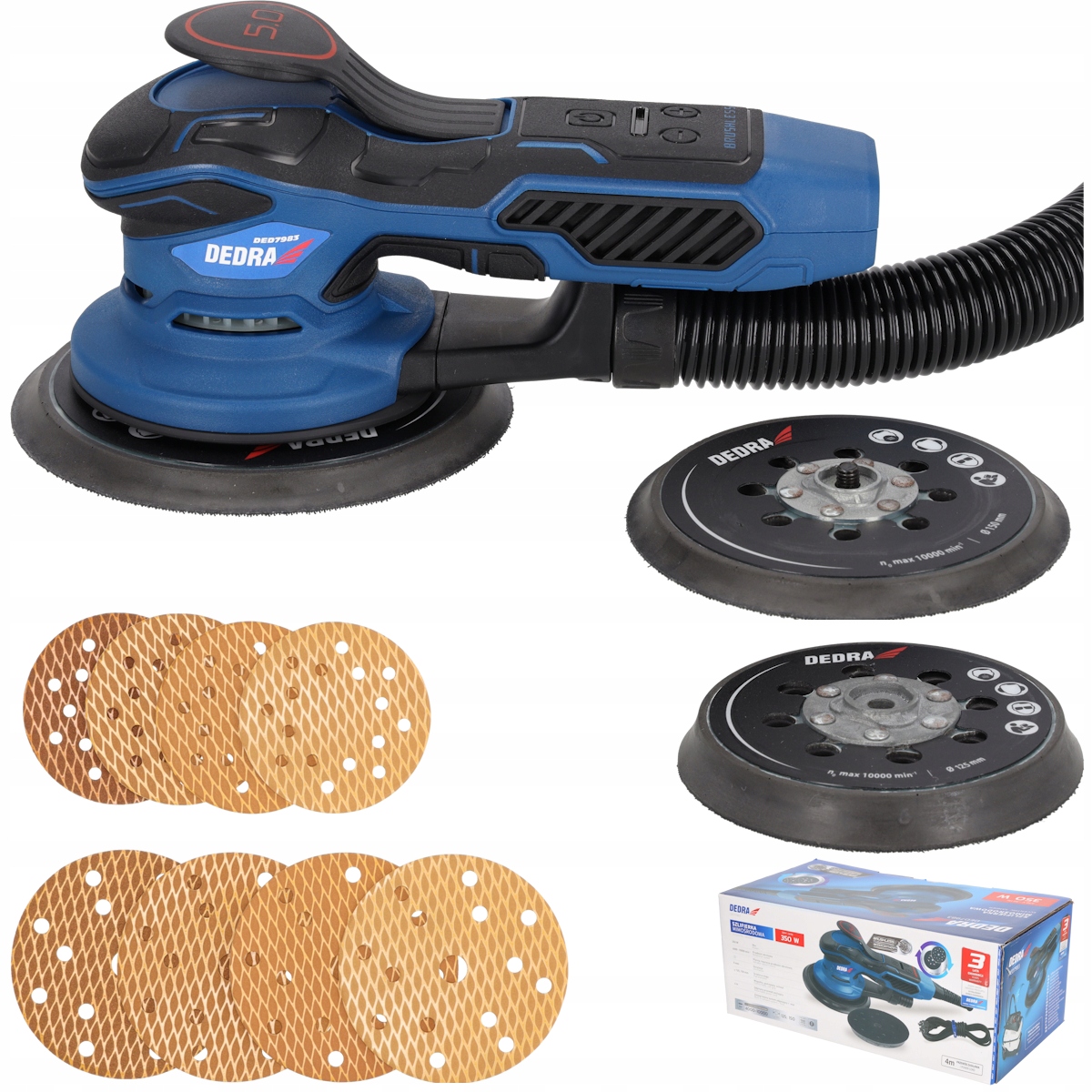 Сильний і тихий ексцентричний шліфувальний дедра ded7983 з регульованою регулюванням швидкості було розроблено для ефективного та без пилу сухого шліфування поверхні деревини, металу або пластмас.