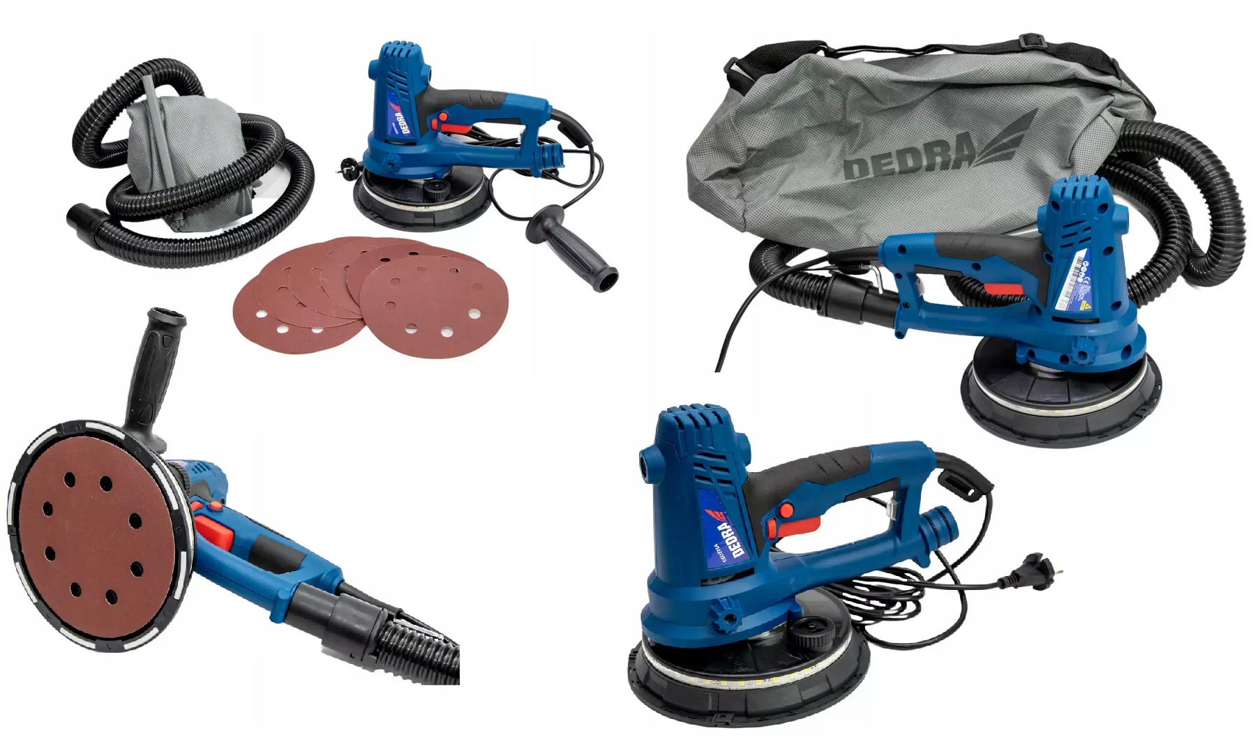 DEDRA DED7764 Світлодіодний ручний шліфувальний верстат 750 Вт, диск 180 мм, для штукатурки, з відсмоктуванням