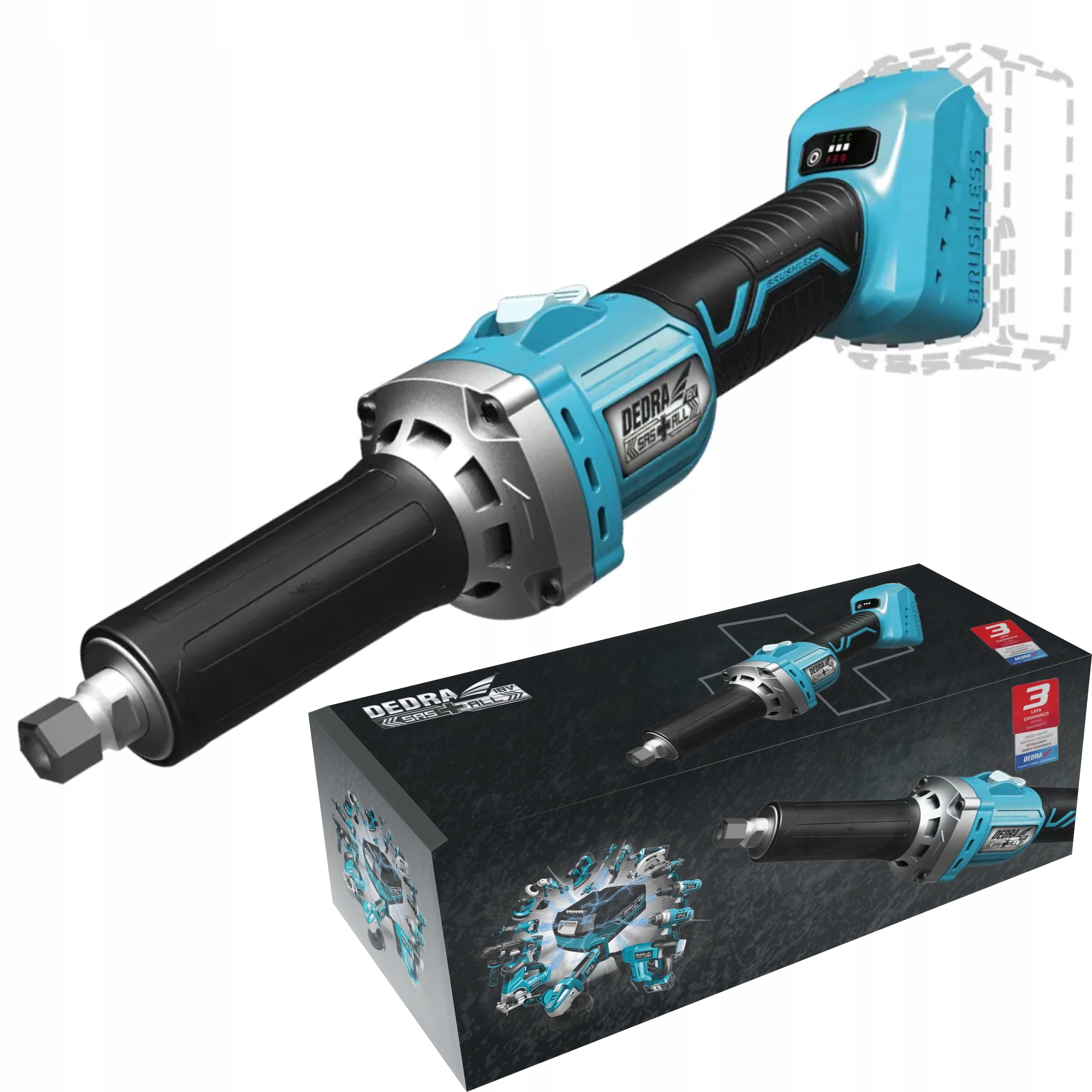 DEDRA АКУМУЛЯТОРНА ПРЯМА ШЛІФАЛЬНА МАШИНА 18 В БЕЗЩІТОЧНА SAS + ВСІ DED7165
