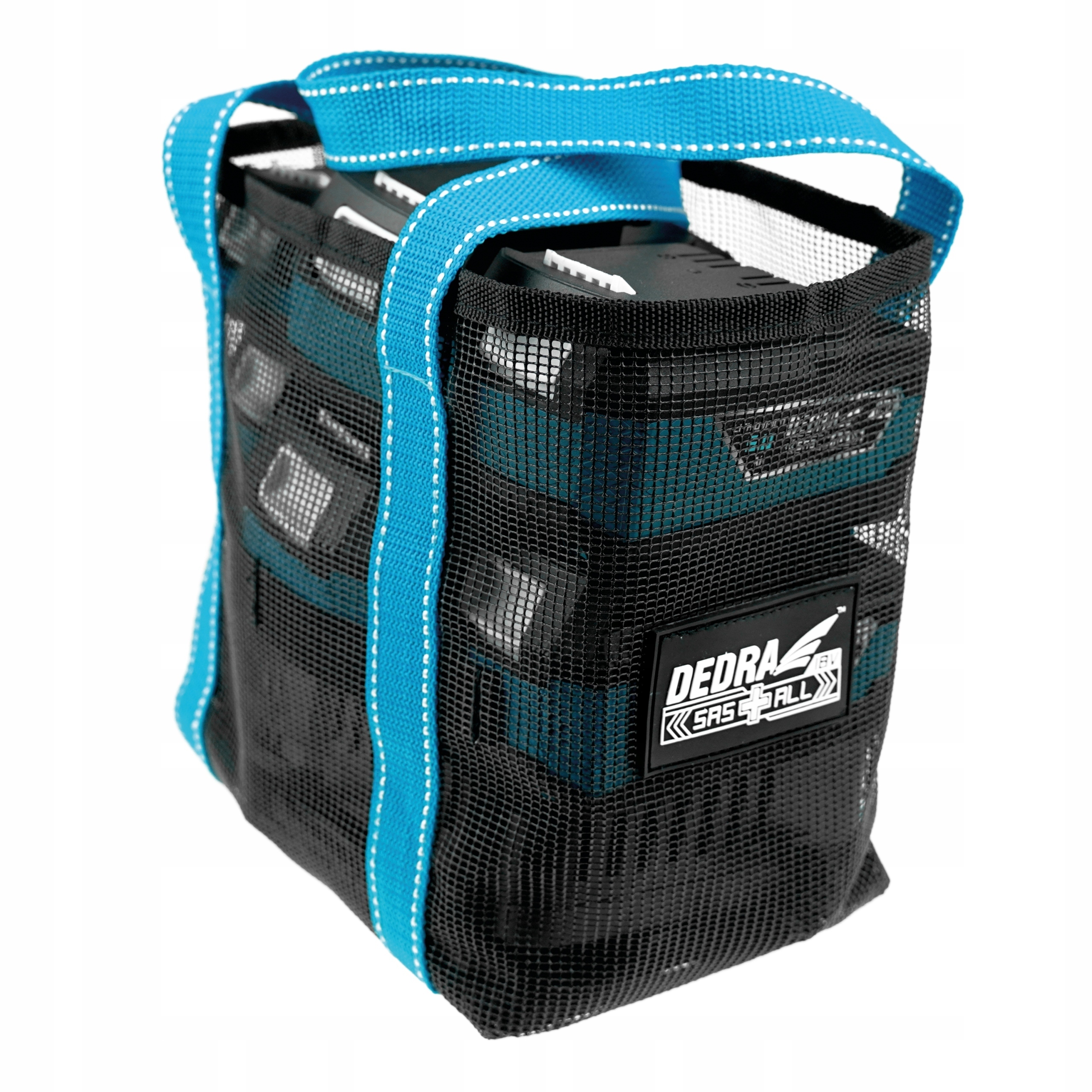 Сумка/чохол, призначений для транспортування акумуляторів і зарядних пристроїв із системи SAS+ALL. Виготовлена з легкої сітки і ремінців, які виконують роль ручок. Мала вага та використаний матеріал дозволяють легко зберігати сумку де завгодно. Чохол дозволяє транспортувати, наприклад, один зарядний пристрій і до шести акумуляторів DED7034/DED7035.