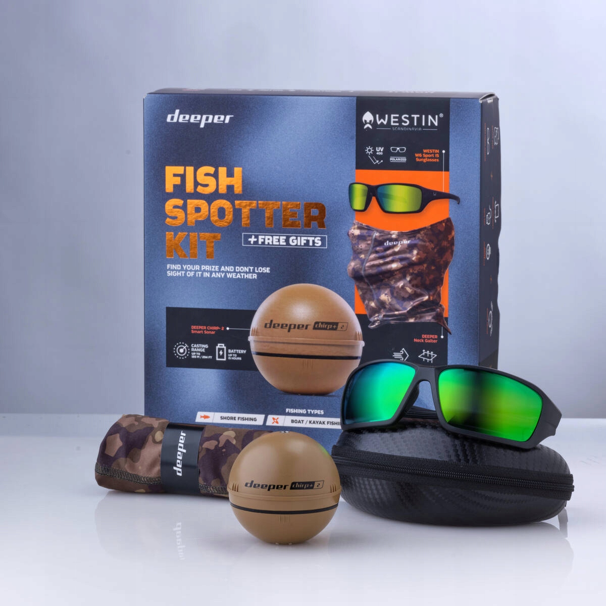 DEEPER CHIRP+2 БЕЗДРОТОВІ ЕХОЗОЛОДИ В КОМПЛЕКТАЦІЇ З ОКЛЯРАМИ WESTIN ТА ГЛИБШИМ ДИМОХОДОМ - БЕЗКОШТОВНО!!!