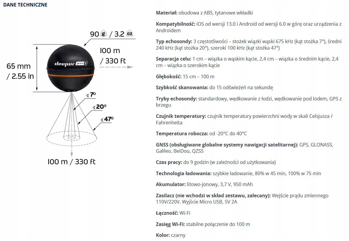 - Сумісність із усіма ехолотами серії Deeper PRO, PRO+, PRO+2, CHIRP+ і CHIRP+2.
