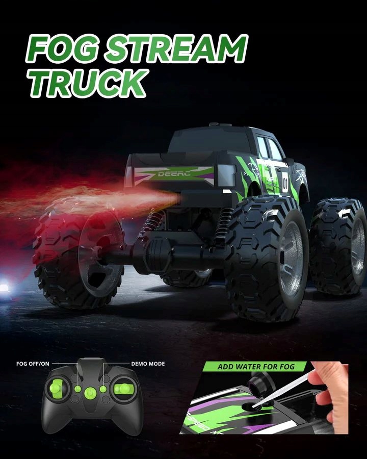 Вантажівка-монстр DEERC DE44 на дистанційному керуванні з протитуманками, двома позашляховими двигунами RC Car, 4WD Rock Crawler зі світлодіодним освітленням, водний туман, понад 70 хвилин розваг, іграшковий автомобіль для хлопчиків, дівчаток і дорослих