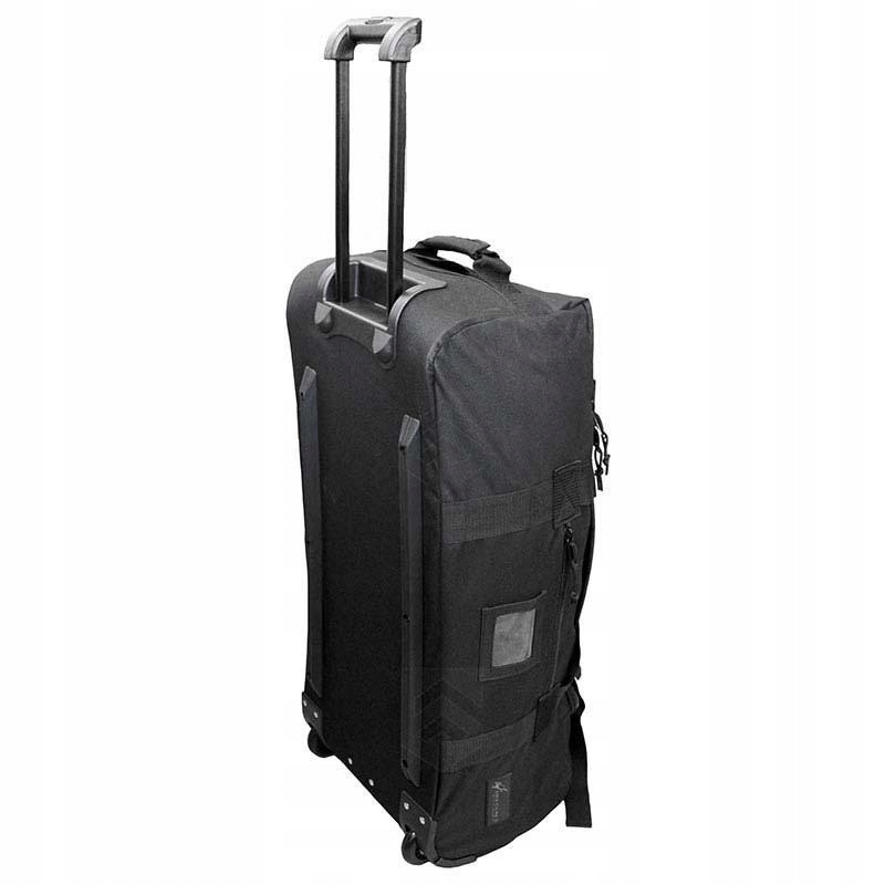Ця дорожня сумка є тактично розробленою сумкою на колесах. Він має велике основне відділення та оснащений двома колесами та ручкою для зручного транспортування. Він поставляється з м’якими плечовими ременями та жорстким, міцним дном. Також можна носити як рюкзак.