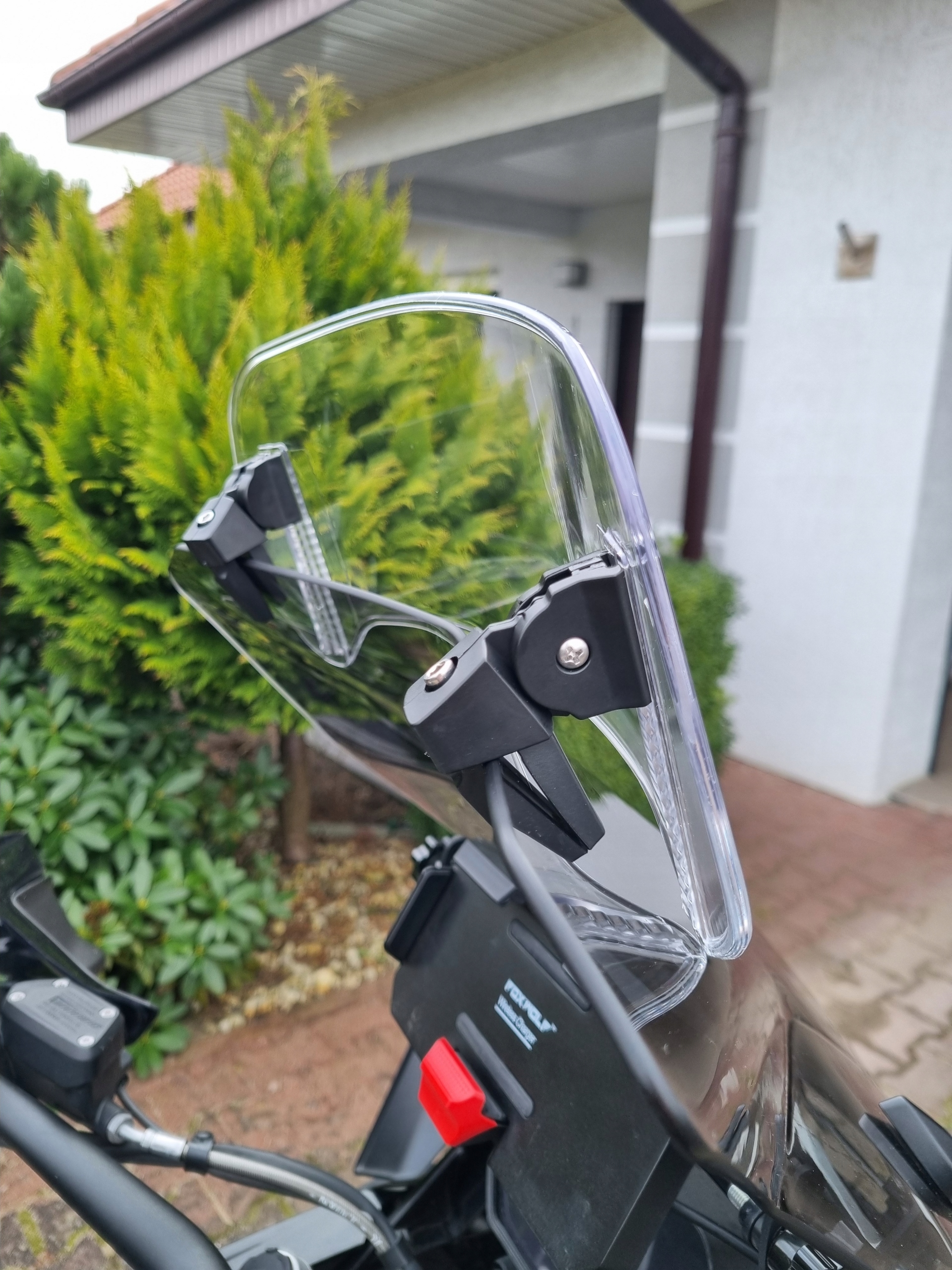 насуньте дефлектор на лобове скло мотоцикла, важливо, щоб лапи були вільними та підлаштовувалися під його форму