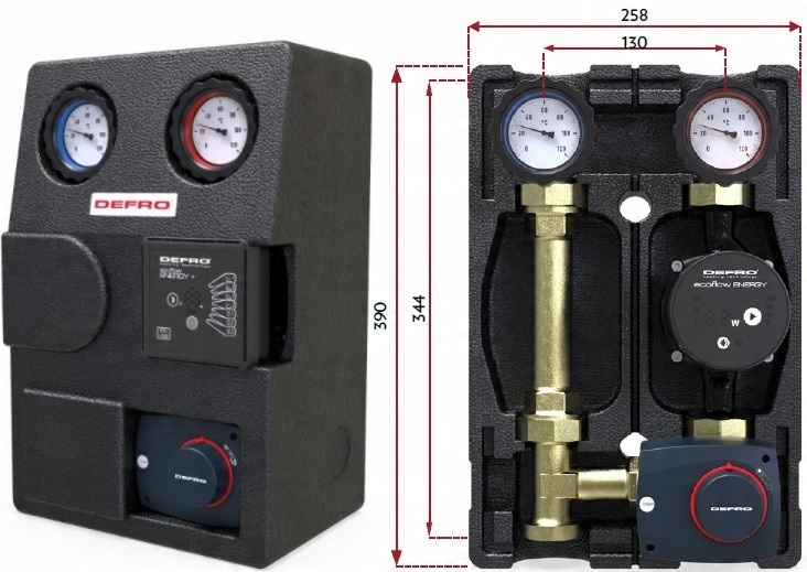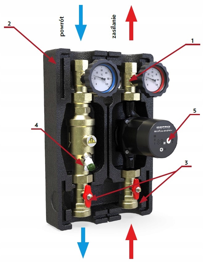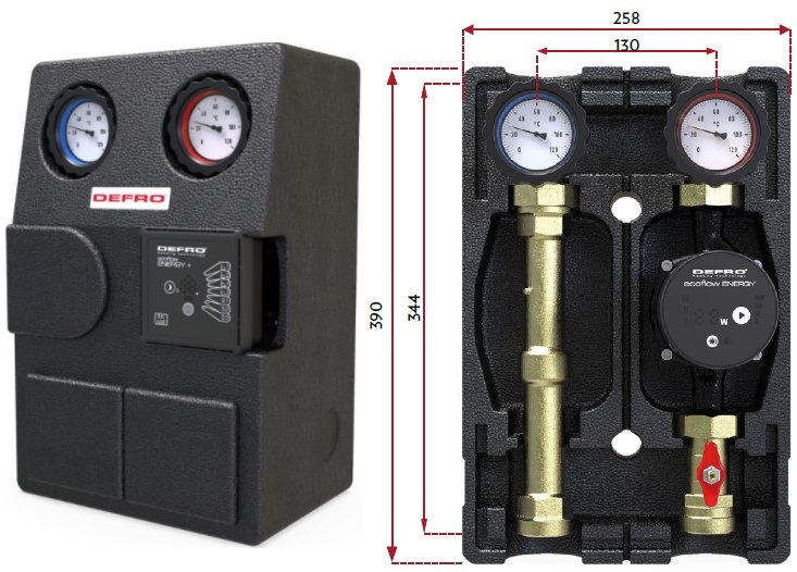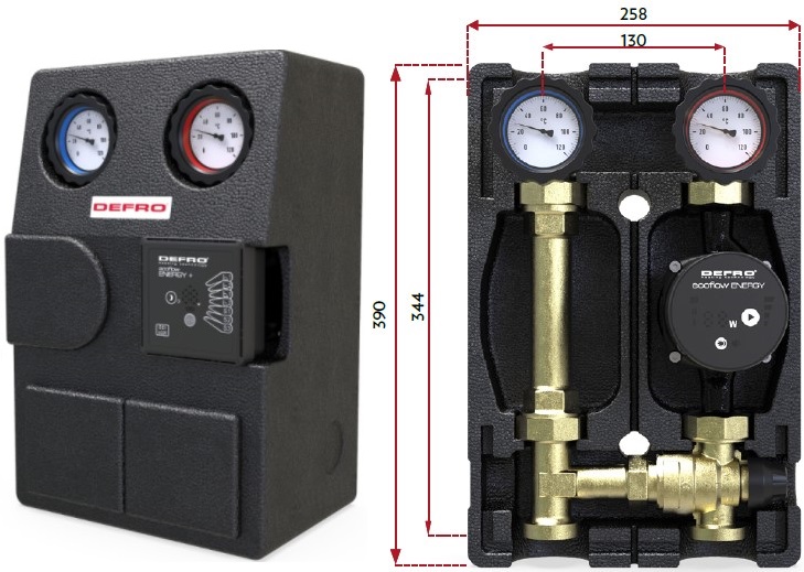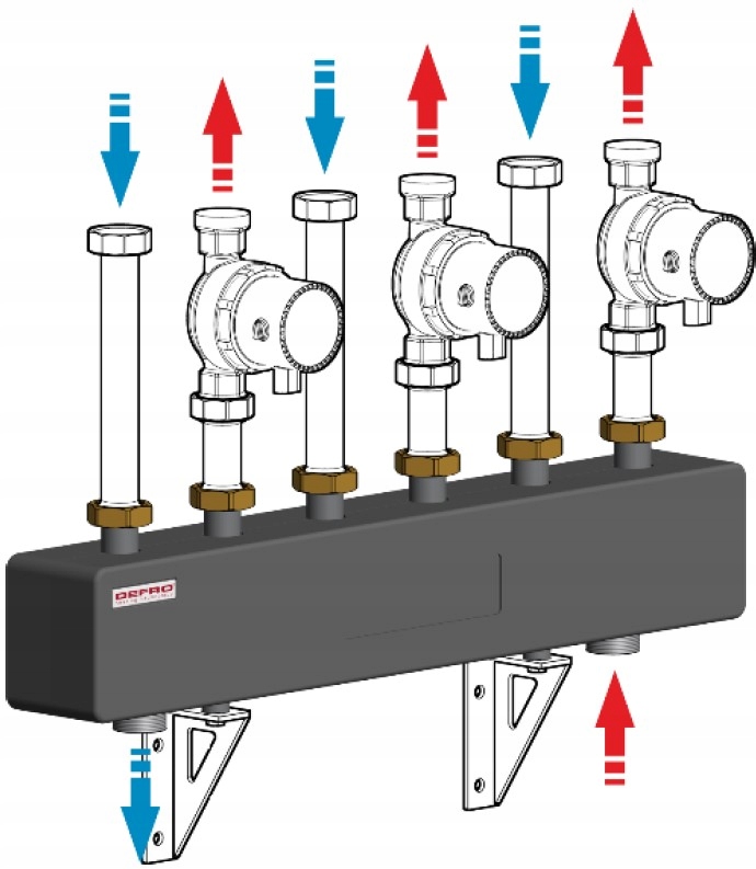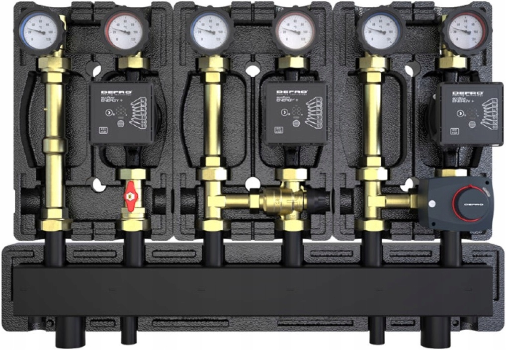 Групи насосів оснащені енергозберігаючими, високопродуктивними насосами Defro Ecoflow Energy Plus із функцією автоматичної адаптації.