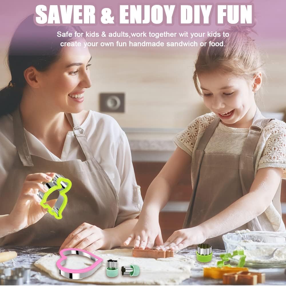 Набір із 12 різаків дозволяє вирізати бутерброди, фрукти, овочі та печиво у кумедні форми - від динозавра та зайчика до сердечка чи метелика. 🌟 Завдяки їм повсякденна трапеза перетвориться на чудову розвагу та спонукатиме дітей до їжі.