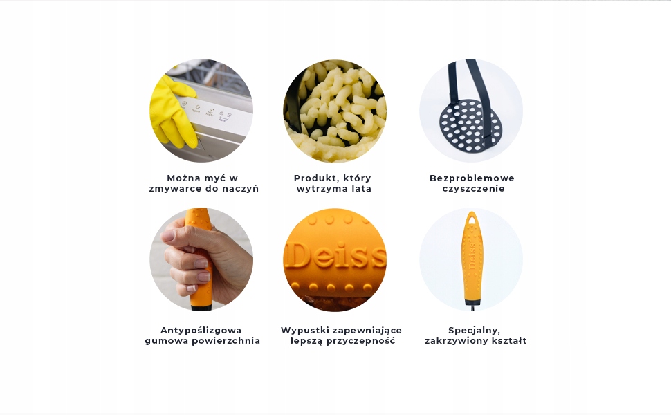 - ПОЛЕГШУЄ ВАШУ РОБОТУ З ПЮРЕ: ні в якому разі не можна товкти картоплю в пюре пошкодити руки, це не повинно бути важко. Ми хочемо, щоб ваше життя на кухні було максимально простим. Наша картопледавка зі зручною гумовою рукояткою зробить розтирання легким вітерцем.