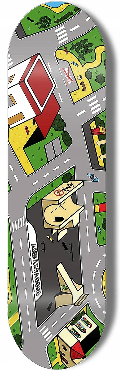Колода для скейтборду Ambassadors Playmat – натхненна мотивом килима з ігровими вулицями, який багато хто з нас знає, наприклад, із дитячого садка та на якому ми провели частину свого дитинства.