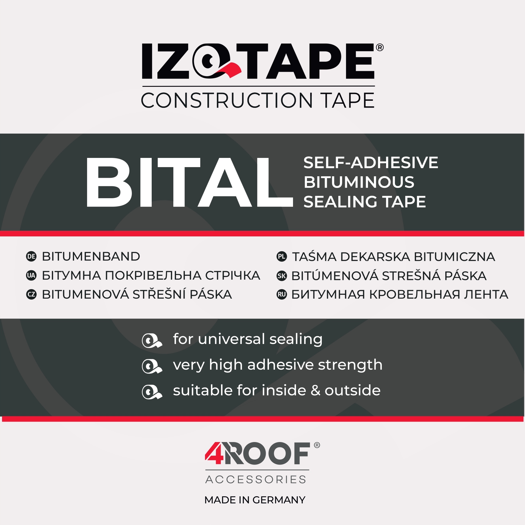 izotape bital Висока якість ступеня izotape Bital Висока якість. Покритий бітум алюмінієвою фольгою, створеною для герметизації та поєднання різних матеріалів, таких як метал, пластик, бетон або скло. Завдяки винятковій міцності та водостійкості, він ідеально підходить для ремонту дахів, жолобів, світлів та інших конструкцій, що піддаються важким погодним умовам. Метал і покрівельна обробка. >- Кількість у пакеті: залежно від ширини (наприклад, 50 мм - 6 шт., 150 мм - 2 шт.)