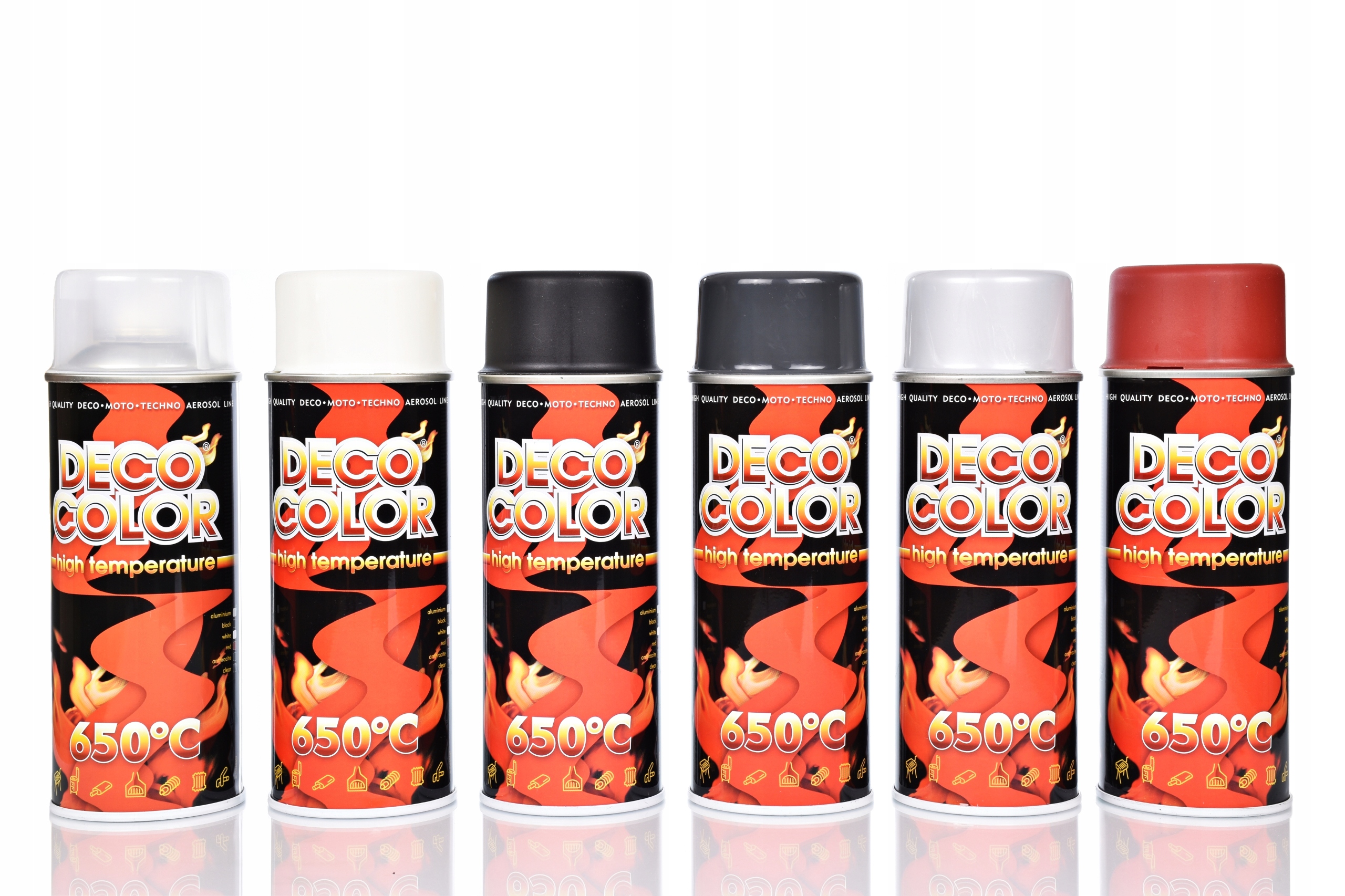 Стійкі до високих температур лаки, які зберігають свій колір навіть при 650°C. Виготовлений на основі високоякісних силіконових смол. Використовуються в автомобільній промисловості, для фарбування глушників і двигунів; в промисловості для фарбування димоходів і печей; в домашніх умовах для фарбування камінів, печей, радіаторів, котлів, садових грилів.