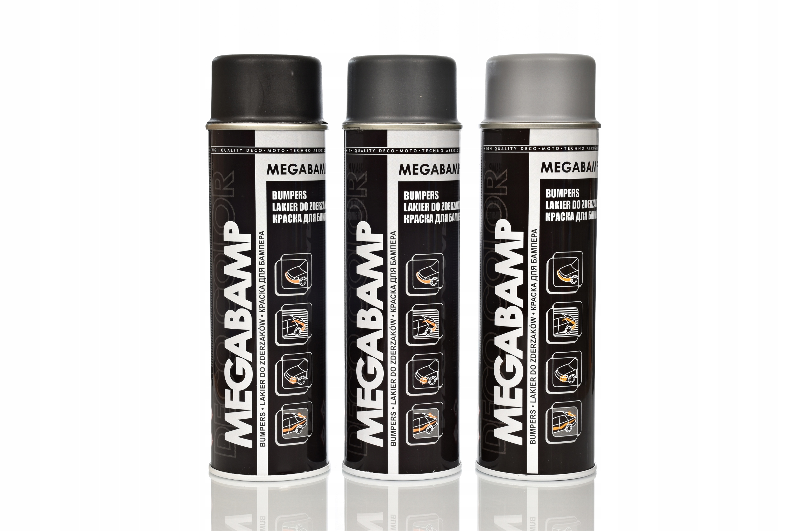 Акриловий лак-спрей MEGABAMP для бамперів та іншого пластику в автомобілях, мотоциклах та іншому комунальному обладнанні, не порушуючи оригінальну структуру фарби поверхні. Завдяки своїм властивостям він також широко використовується в роботі в домі та саду.