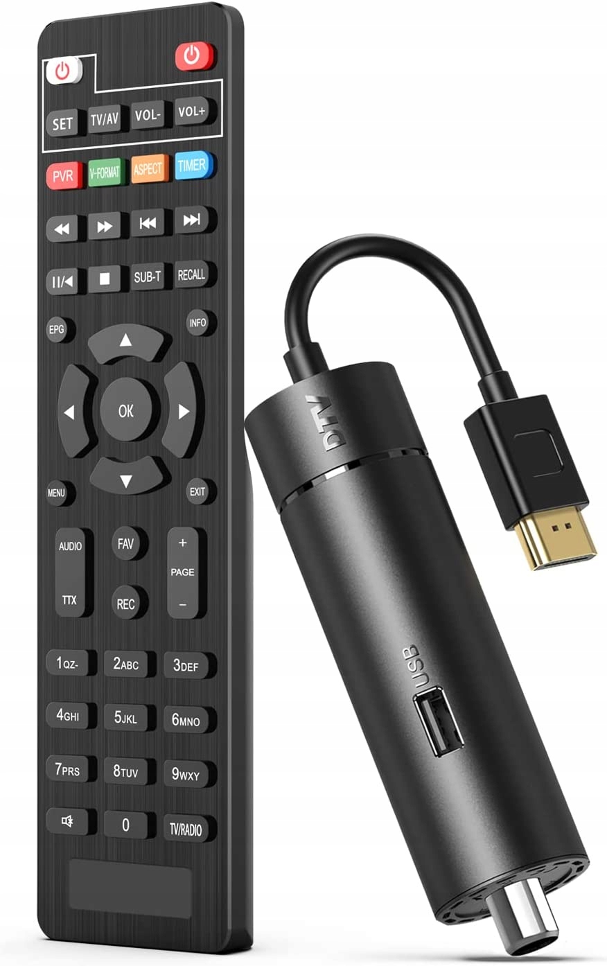 DCOLOR DVB-T2/C Mini HDMI Stick Decoder, DVB T2 Invisible Digital Terrestrial TV Decoder 1080p Output Supports HEVC H.265 10-bit Dolby Audio Recorder/PVR [2 in 1 Programmable Remote Control] для TV HD