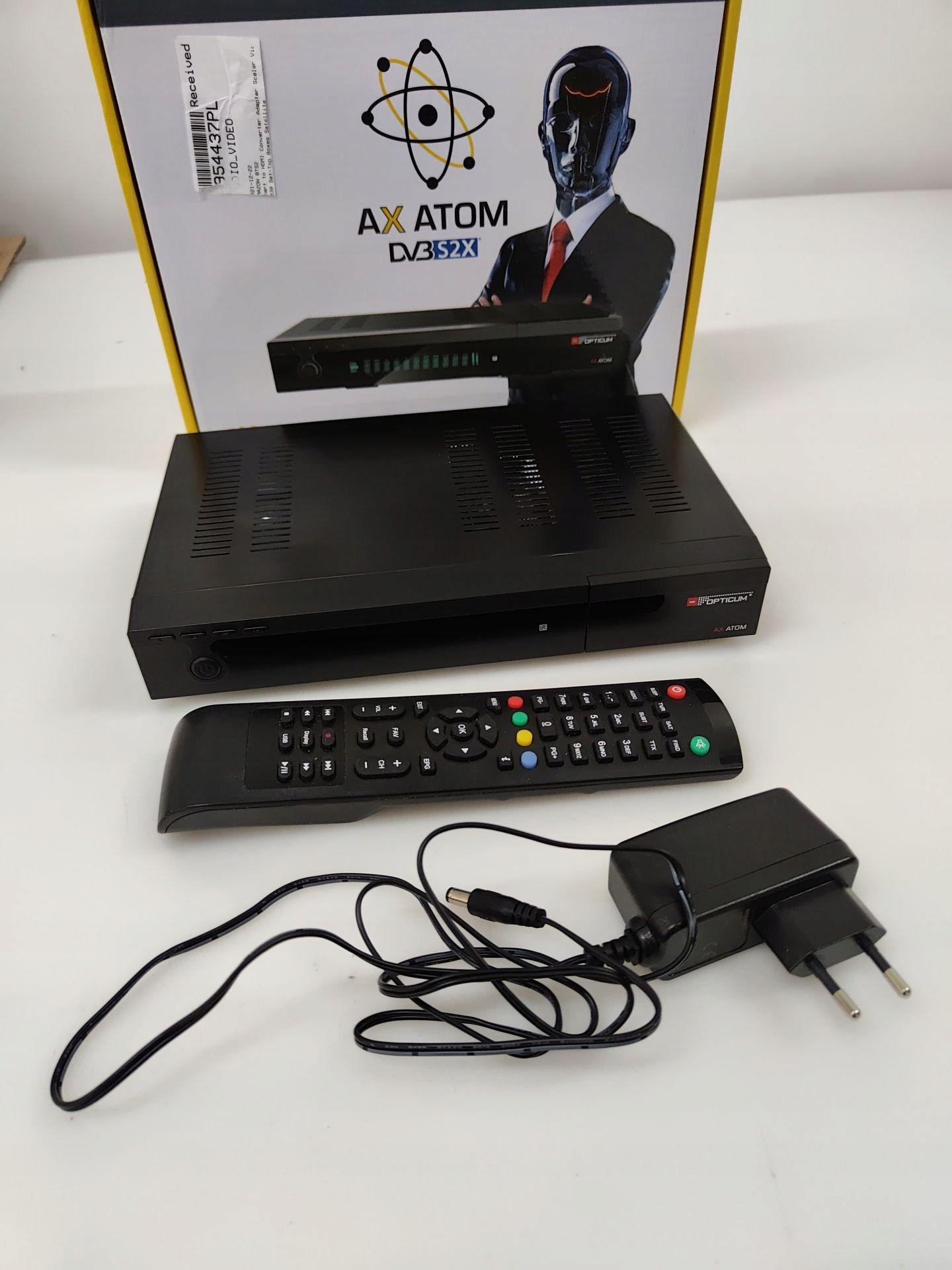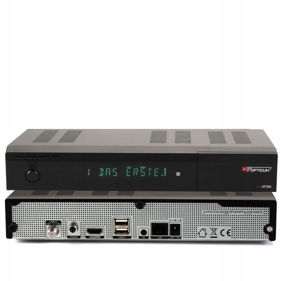 Червоний цифровий супутниковий приймач Opticum AX ATOM 4K UHD із функцією запису PVR – алфавітно-цифровий дисплей / HDMI / 2x USB 2.0 / RJ45 LAN-Ethernet порт / Коаксіальний аудіовихід / 12 В блок живлення / Conax Card Reader / Підтримка 3D-відео