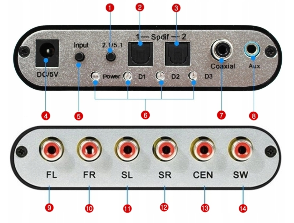 Декодер OPTYCZNY TOSLINK SPDIF 5.1 ANALOG AC3/DTS